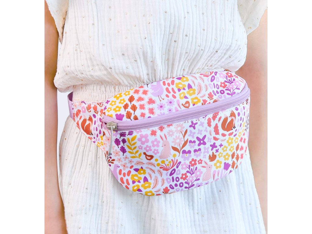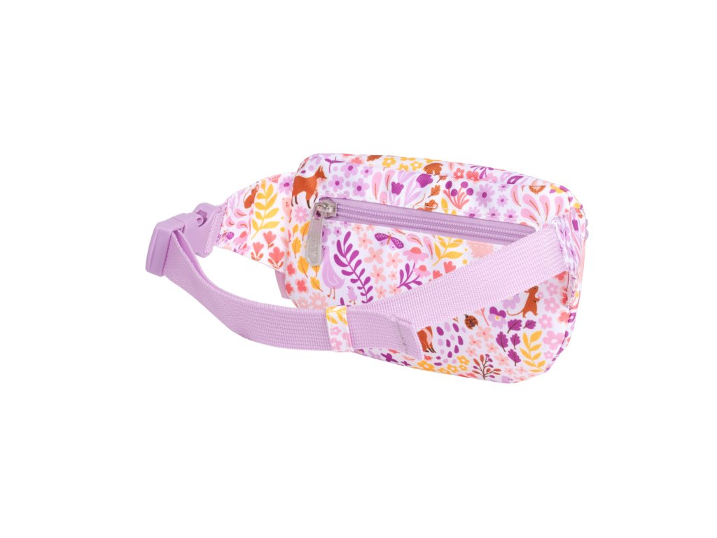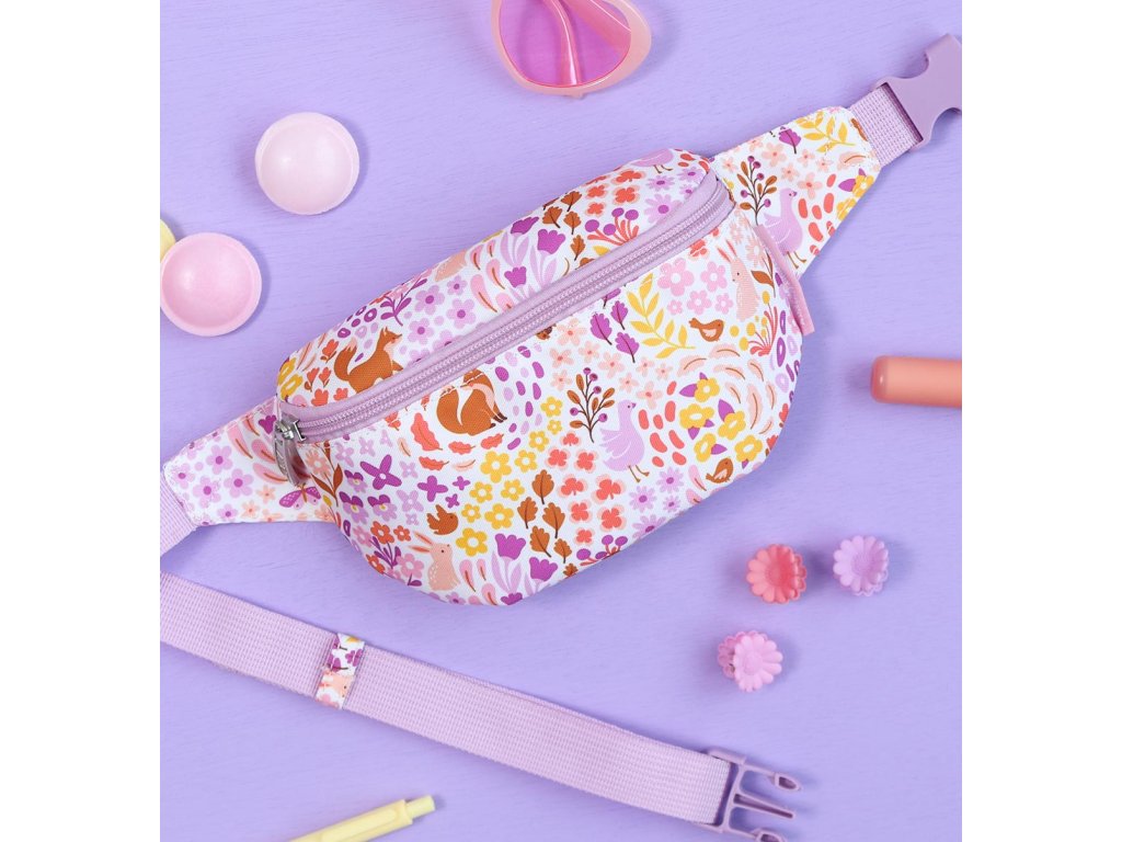 Detská ľadvinka s potlačou zvieratiek v kvetinovej záhrade s nastaviteľným popruhom. Dá sa nosiť okolo pásu a možno ju použiť aj ako crossbody kabelku. Do prednej priehradky sa ľahko vojde peňaženka a mobilný telefón. Zadné vrecko na zips je ideálne na drobné cennosti. Doplňte si súpravu batohom, fľašou na pitie a škatuľkou na obed v rovnakom dizajne. • rozmery: 23 x 13 x 5 cm • materiál: polyesterDodatočné parametre