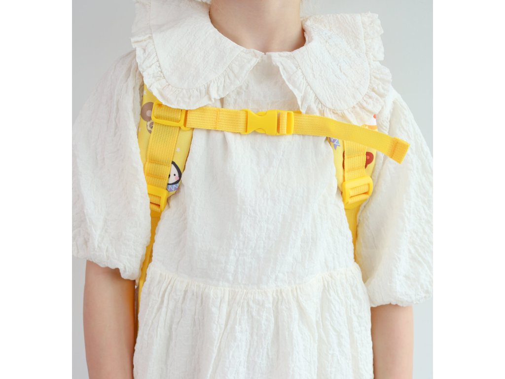 Malý detský batôžtek pre deti od 2 rokov. Priestorná hlavná komora s ďalším predným vreckom na zips má dostatok priestoru na desiatu aj na obľúbenú hračku. Batoh má polstrované ramenné popruhy a pohodlný chrbtový panel. Polyesterový materiál je pevný, ľahký a zdobí ho farebná potlač. Hrudný popruh zaistí, že batoh zostane bezpečne na ramenách.