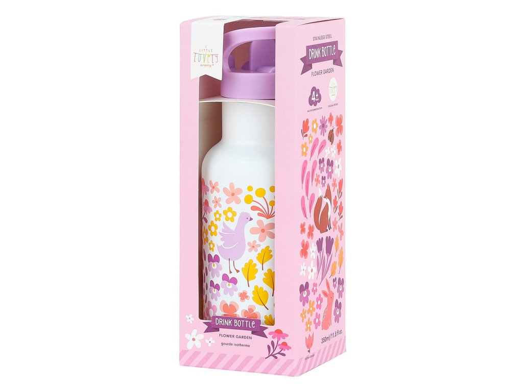 A Little Lovely Company - antikorová fľaša na pitie, 350 ml - kvetinová záhrada