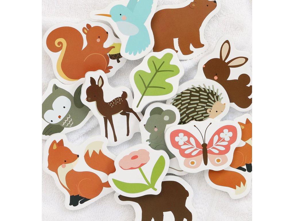 Doprajte deťom od 3 rokov nekonečnú zábavu počas večerného kúpeľa s roztomilými penovými hračkami do kúpeľa s motívom zvieratiek z lesa. Týchto 14 penových zvieratiek sa za mokra prilepí na stenu a po kúpeli ich možno uložiť do priloženej sieťky. Sieť možno zavesiť v kúpeľni pomocou prísaviek. Penové diely neabsorbujú vodu, takže sa ľahko čistia a sušia, čo zabráni plesniam. Parametre: • Rozmery balenia sú 16 x 16 cm. • Jeden dielik má rozmery cca 9 x 0,8 cm.