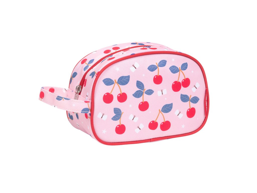 Toaletná taštička s čerešňami je ideálna na výlety, na letné tábory alebo na dovolenku. Toaletná taštička ponúka priestornú priehradku s dostatkom miesta na šampón, mydlo, zubnú kefku, zubnú pastu a ďalšie nevyhnutné potreby. Toaletná taštička má tiež praktickú rukoväť pre ľahké prenášanie a zavesenie.