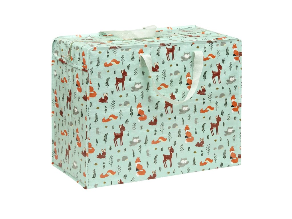Veľká úložná taška s potlačou lesných zvieratiek je ideálna pre skladovanie oblečenia, prikrývok a hračiek, ale možno ju tiež použiť na pláž alebo do bazénu. Taška je vyrobená z recyklovaného plastu a zatvára sa na zips. Tašku možno ľahko zložiť, takže pokiaľ ju práve nevyužívate, nezaberá príliš miesta. Rozmery: 58 x 45 x 0,5 cm Obsah: 73 litrov Materiál: Recyklovaný plast