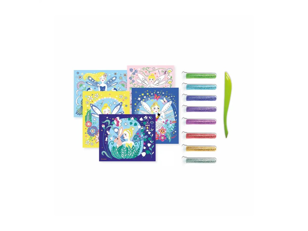 Kreatívna súprava pre deti od 4 rokov na obľúbenú tému víly. S touto súpravou si deti dotvoria obrázky pomocou farebných trblietok. Táto technika nie je nijako zložitá. Pomocou špachtle odstránite samolepiace časti, na ktoré nasypete krásne lesklé farebné trblietky!