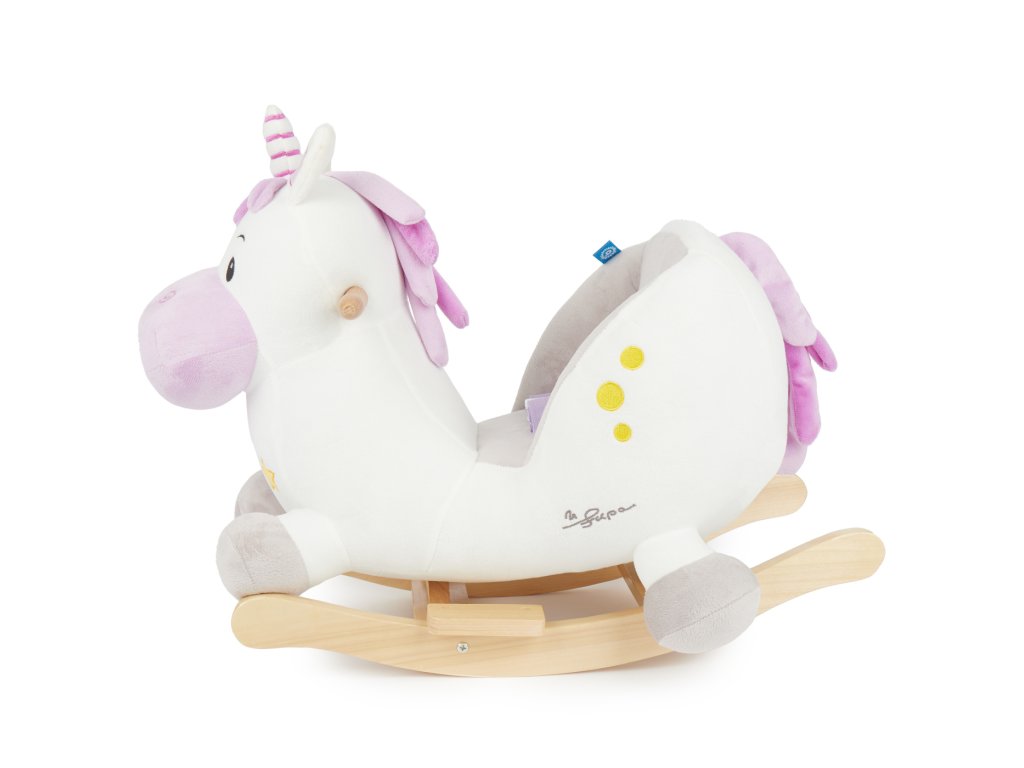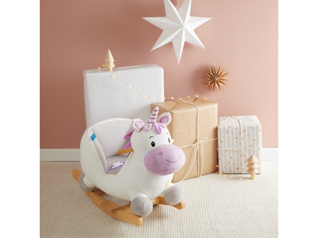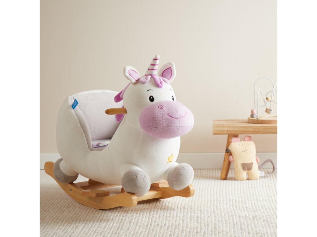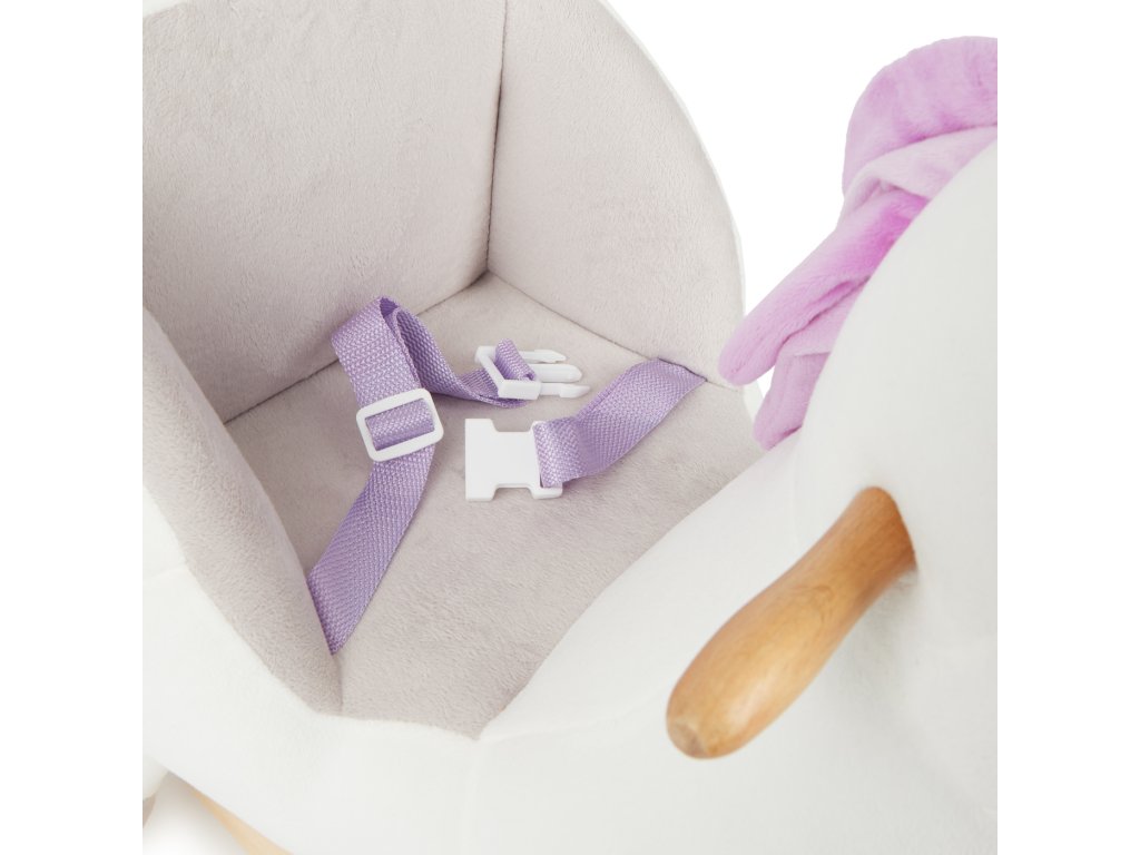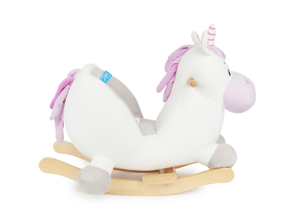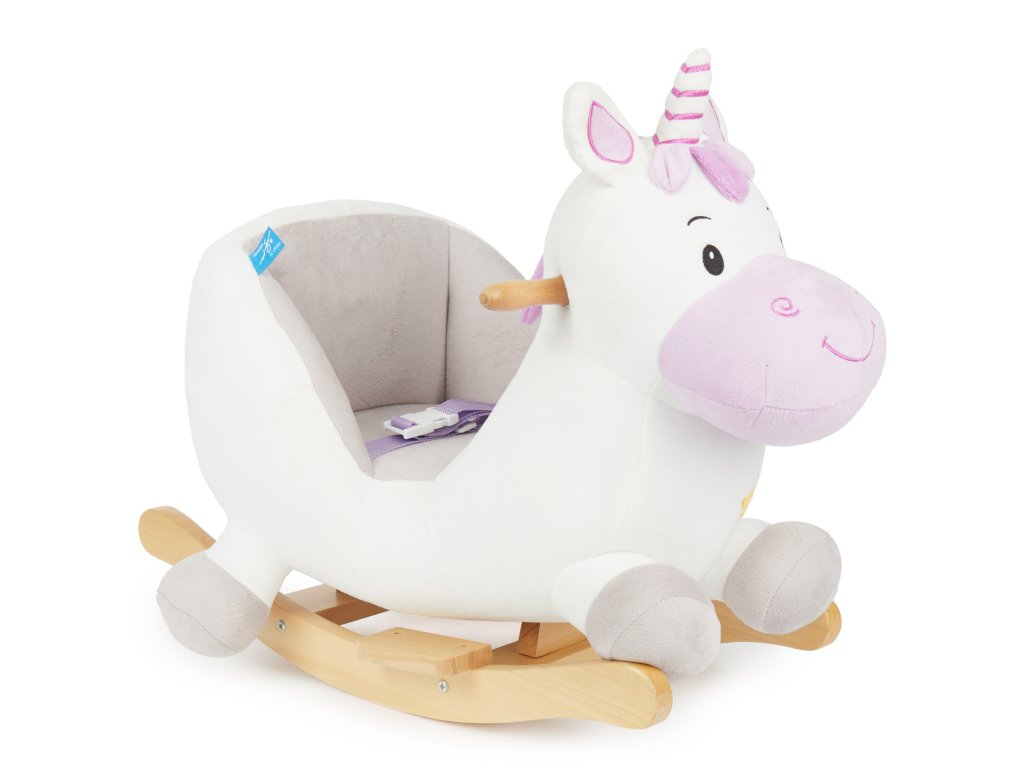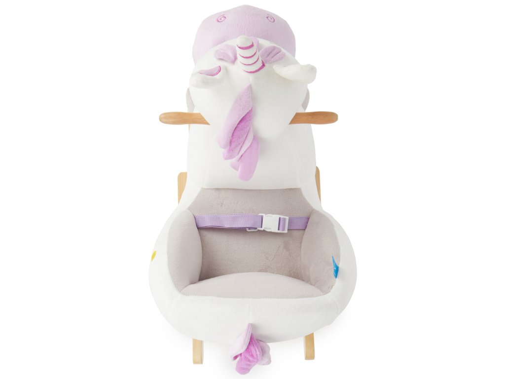 Hojdací jednorožec rozžiari oči aj tým najmenším deťom! Roztomilé hojdacie zvieratko je ako stvorené pre deti už od 9 mesiacov. Vďaka hebkému plyšovému povrchu a útulnému tvaru si deti jednorožca zamilujú a z detskej izbičky sa rýchlo stane ich obľúbené miesto. Hojdačka je vybavená mäkkým, pohodlne polstrovaným sedadlom s bezpečnostným pásom, ktoré poskytuje maximálne pohodlie a ochranu aj tým najmenším deťom. Hojdanie prirodzene podporuje motoriku, rozvíja rovnováhu a napomáha pohybovej aktivite. Stabilná konštrukcia z masívneho dreva má ochranu proti prevráteniu, deti sa môžu držať drevených držadiel a nôžky si pohodlne oprieť o opierky. Nízka výška sedadla (cca 14 cm) uľahčuje malým deťom bezpečné nasadanie aj zosadanie.