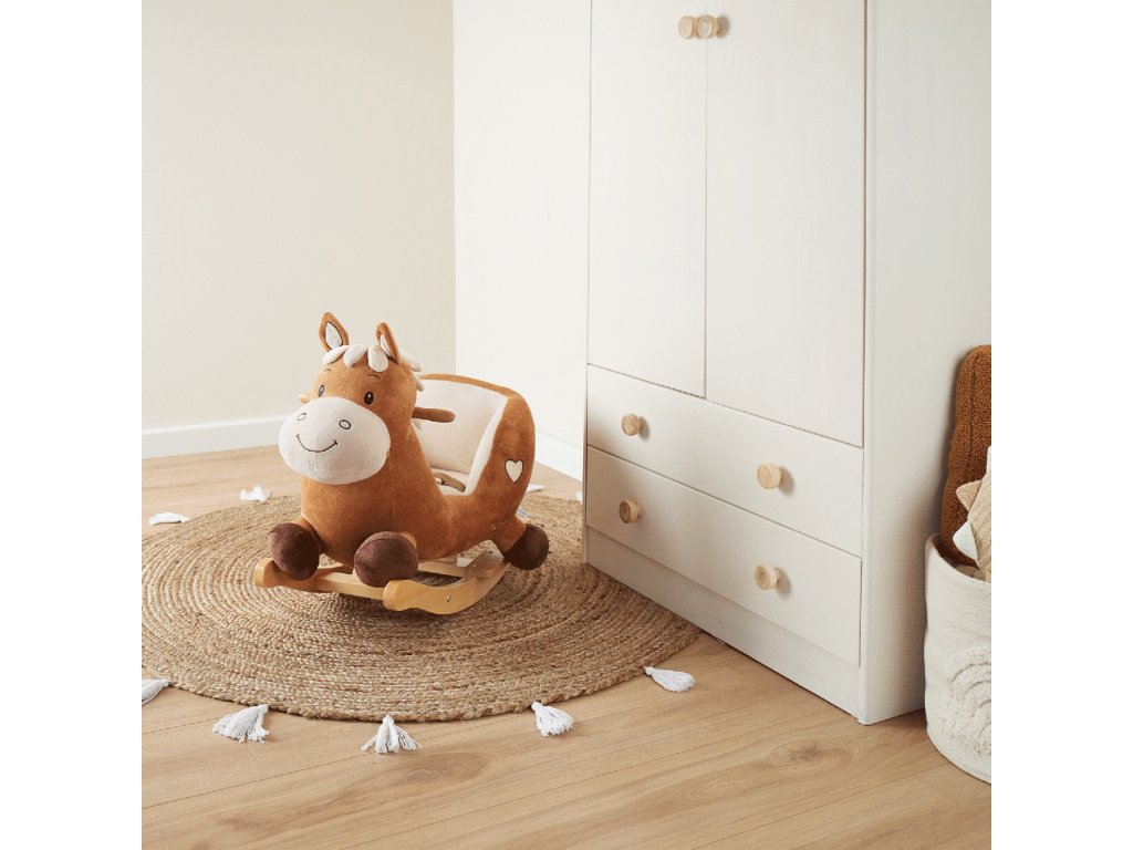 Hojdací koník Calimero rozžiari oči aj tým najmenším deťom! Roztomilé hojdacie zvieratko je ako stvorené pre deti už od 9 mesiacov. Vďaka hebkému plyšovému povrchu a útulnému tvaru si deti koníka zamilujú a z detskej izbičky sa rýchlo stane ich obľúbené miesto. Hojdačka je vybavená mäkkým, pohodlne polstrovaným sedadlom s bezpečnostným pásom, ktoré poskytuje maximálne pohodlie a ochranu aj tým najmenším deťom. Hojdanie prirodzene podporuje motoriku, rozvíja rovnováhu a napomáha pohybovej aktivite. Stabilná konštrukcia z masívneho dreva má ochranu proti prevráteniu, deti sa môžu držať drevených držadiel a nôžky si pohodlne oprieť o stúpadlá. Nízka výška sedadla (cca 14 cm) uľahčuje malým deťom bezpečné nasadanie aj zosadanie.