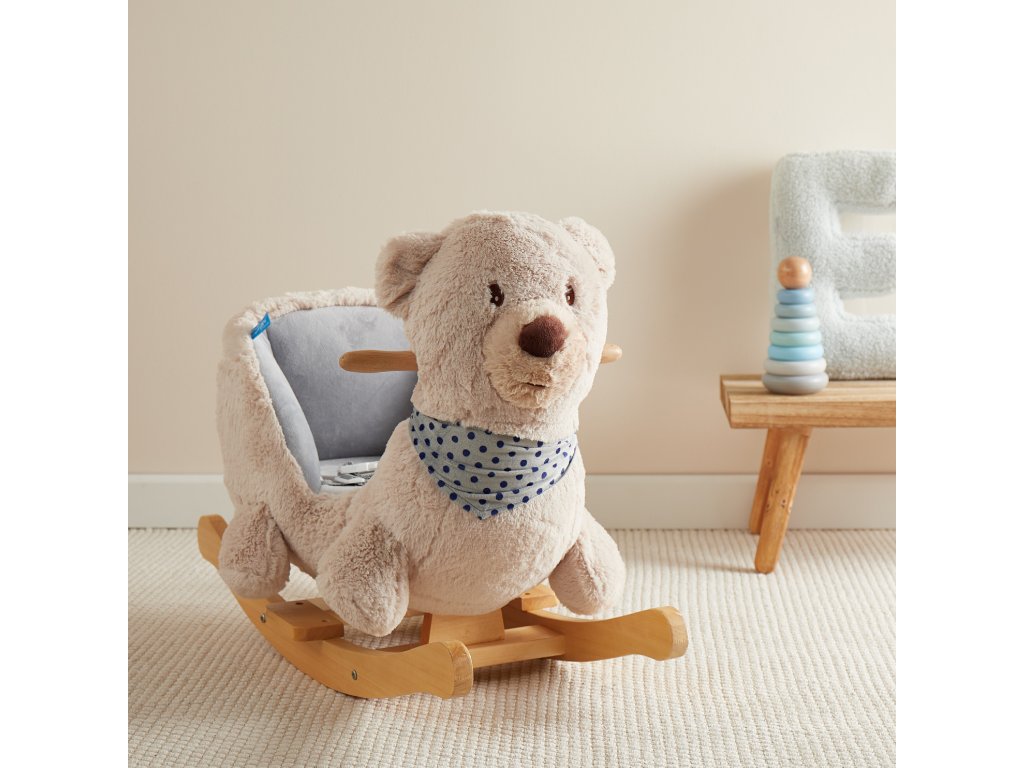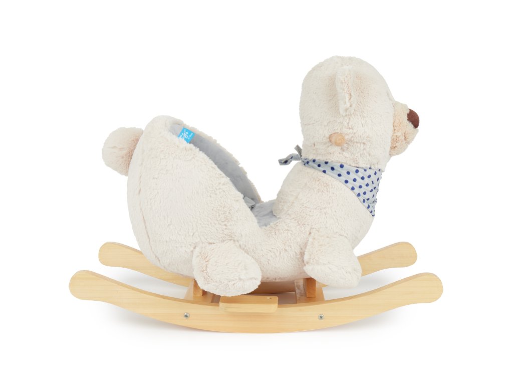 Hojdací medveď rozžiari oči aj tým najmenším deťom! Roztomilé hojdacie zvieratko je ako stvorené pre deti už od 9 mesiacov. Vďaka hebkému plyšovému povrchu a útulnému tvaru si deti medveďa zamilujú a z detskej izbičky sa rýchlo stane ich obľúbené miesto. Hojdačka je vybavená mäkkým, pohodlne polstrovaným sedadlom s bezpečnostným pásom, ktoré poskytuje maximálne pohodlie a ochranu aj tým najmenším deťom. Hojdanie prirodzene podporuje motoriku, rozvíja rovnováhu a napomáha pohybovej aktivite. Stabilná konštrukcia z masívneho dreva má ochranu proti prevráteniu, deti sa môžu držať drevených držadiel a nôžky si pohodlne oprieť o stúpadlá. Nízka výška sedadla (cca 14 cm) uľahčuje malým deťom bezpečné nasadanie aj zosadanie.