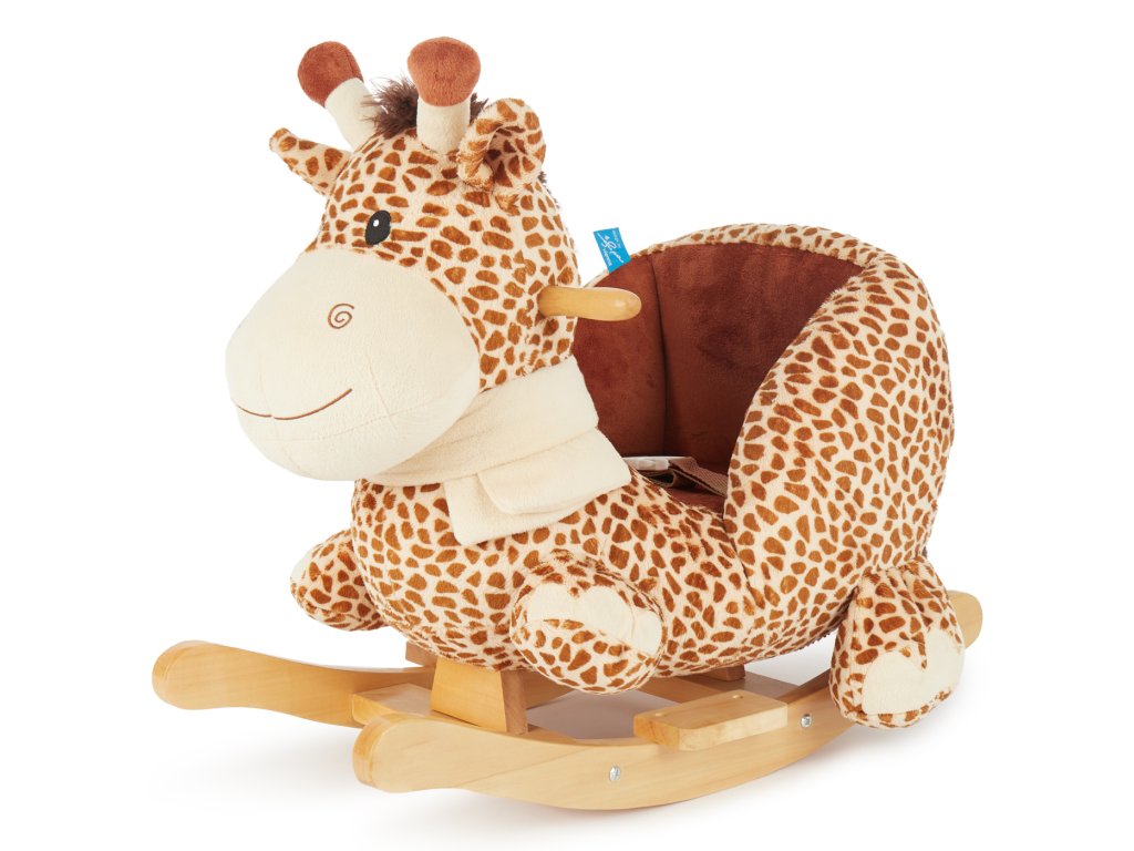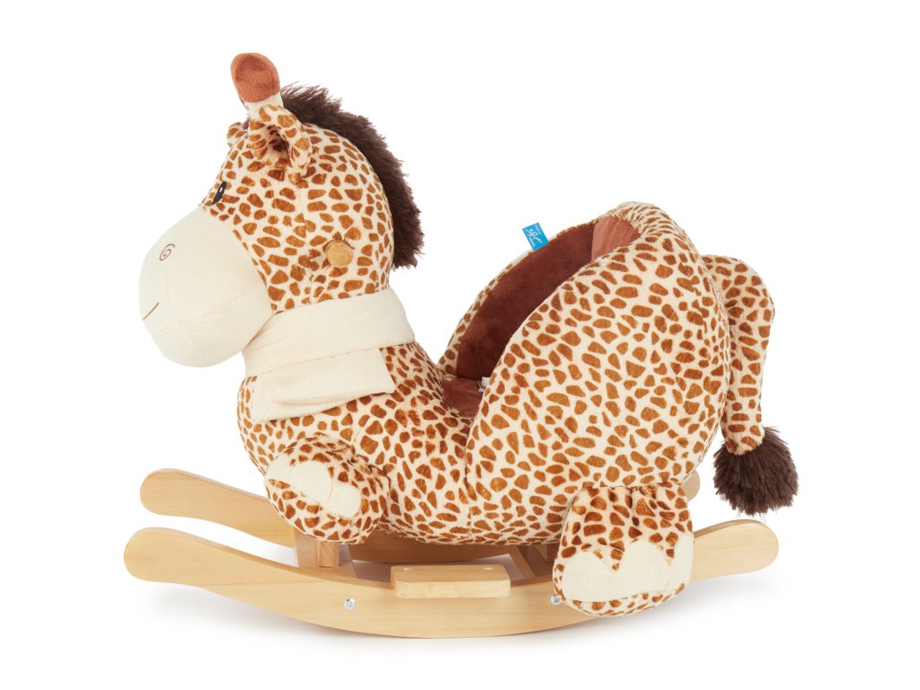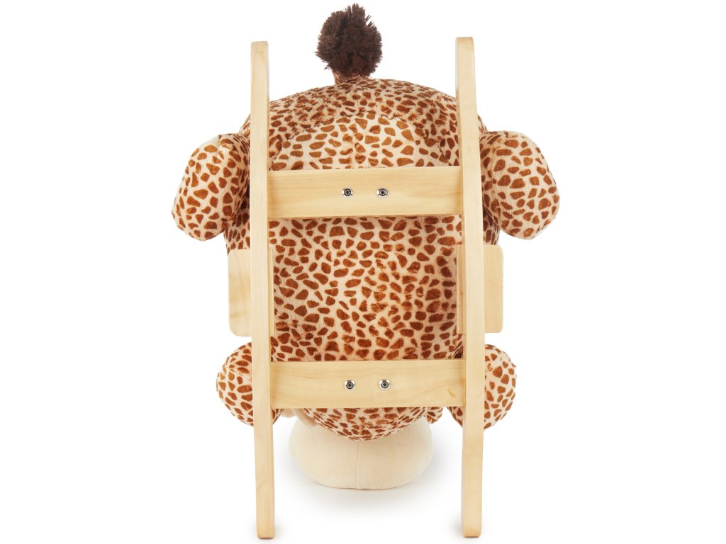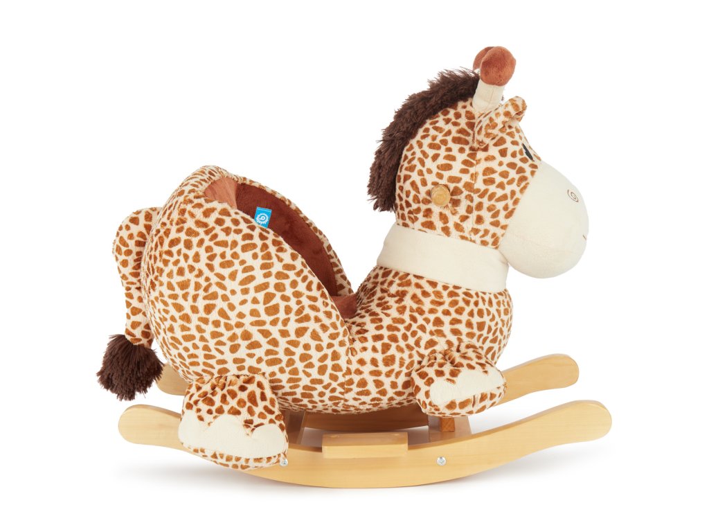Hojdacia žirafa rozžiari oči aj tým najmenším deťom! Roztomilé hojdacie zvieratko je ako stvorené pre deti už od 9 mesiacov. Vďaka hebkému plyšovému povrchu a útulnému tvaru si deti žirafu zamilujú a z detskej izbičky sa rýchlo stane ich obľúbené miesto. Hojdačka je vybavená mäkkým, pohodlne polstrovaným sedadlom s bezpečnostným pásom, ktoré poskytuje maximálne pohodlie a ochranu aj tým najmenším deťom. Hojdanie prirodzene podporuje motoriku, rozvíja rovnováhu a napomáha pohybovej aktivite. Stabilná konštrukcia z masívneho dreva má ochranu proti prevráteniu, deti sa môžu držať drevených držadiel a nôžky si pohodlne oprieť o stúpadlá. Nízka výška sedadla (cca 14 cm) uľahčuje malým deťom bezpečné nasadanie aj zosadanie.