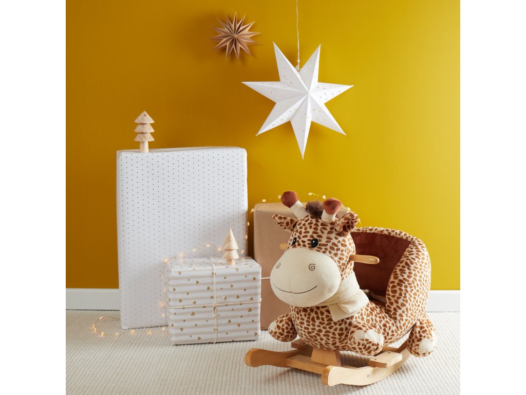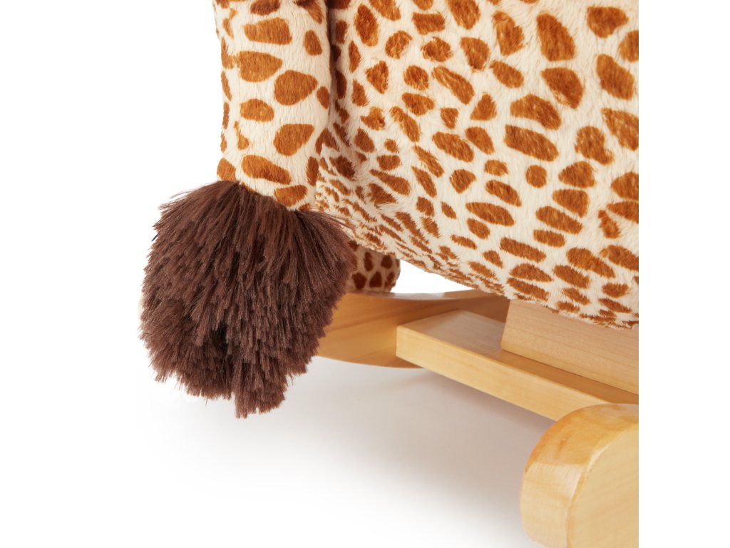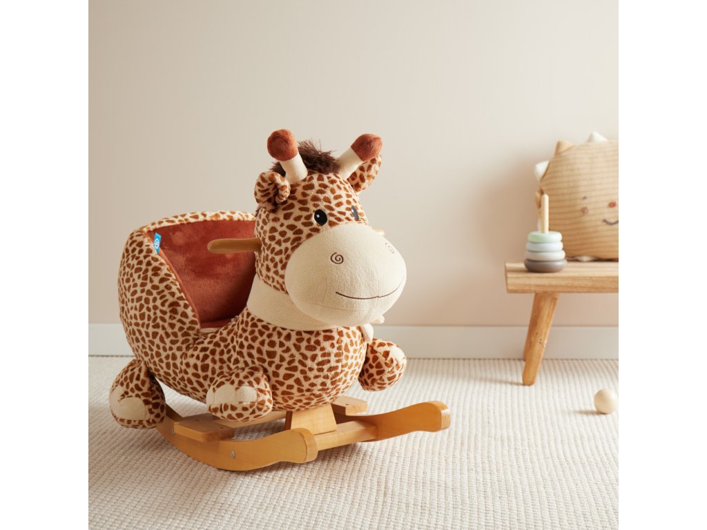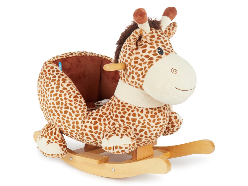 Hojdacia žirafa rozžiari oči aj tým najmenším deťom! Roztomilé hojdacie zvieratko je ako stvorené pre deti už od 9 mesiacov. Vďaka hebkému plyšovému povrchu a útulnému tvaru si deti žirafu zamilujú a z detskej izbičky sa rýchlo stane ich obľúbené miesto. Hojdačka je vybavená mäkkým, pohodlne polstrovaným sedadlom s bezpečnostným pásom, ktoré poskytuje maximálne pohodlie a ochranu aj tým najmenším deťom. Hojdanie prirodzene podporuje motoriku, rozvíja rovnováhu a napomáha pohybovej aktivite. Stabilná konštrukcia z masívneho dreva má ochranu proti prevráteniu, deti sa môžu držať drevených držadiel a nôžky si pohodlne oprieť o stúpadlá. Nízka výška sedadla (cca 14 cm) uľahčuje malým deťom bezpečné nasadanie aj zosadanie.