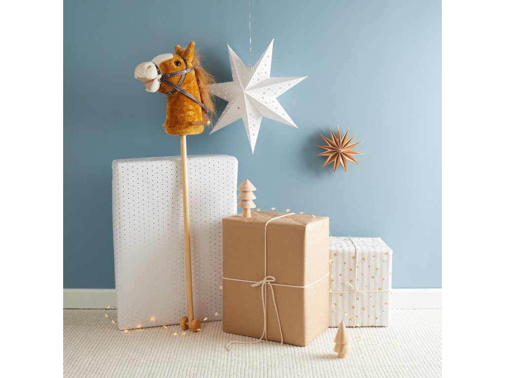 Objavte nového kamaráta pre vašich malých dobrodruhov! Koník Brownie prináša zábavu plnú fantázie a pohybu. Stačí nasadnúť, pevne sa chytiť rukovätí a vydať sa v ústrety kúzelným lesom alebo slnečným čistinám doma v obývačke alebo na záhrade. Nech už ste kovboj alebo hobby jazdec – tento kôň bude sprevádzať svojho jazdca v dobrom aj zlom. Koník Brownie je viac než len hračka: Podporuje prirodzený pohyb detí a rozvíja ich hrubú motoriku. Umožňuje kreatívnu hru plnú príbehov a veselého hopsania. Bezpečný a praktický dizajn. Pevná konštrukcia a praktické bočné rukoväte zaisťujú bezpečné uchopenie, zatiaľ čo hladké kolieska nezanechávajú stopy na podlahe a šmýkajú sa po hladkom rovnom povrchu. Koník Brownie bude verným parťákom detí na všetkých cestách – nech už ide o tichú jazdu rozprávkovým lesom alebo divoké preteky plné smiechu. Hobby Horsing pochádza z Fínska a spája vášeň pre jazdecký svet s prvkami gymnastiky, atletiky a akrobacie. Pri spoločnom jazdení, kŕmení, stylingu a súťažiach v prekážkových dráhach je stredom záujmu kreativita, hra a zábava. Hobby Horsing je vhodný pre deti od dvoch rokov a zostáva zábavný až do školského veku. Rozmery: 100 x 24 x 27 cm Materiál: polyester, drevo Pozor, používajte iba pod dohľadom dospelej osoby. Zhoda s normou: EN-71-1-2-3. Nezávisle testované a kontrolované na škodlivé látky.