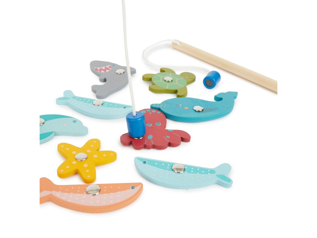 Magnetická rybárska hra spája zábavu a učenie pre najmenšie deti od 2 rokov. Vydajte sa na lov morských živočíchov s touto magnetickou rybárskou hrou! Deti si pomocou rybárskeho prútu precvičia sústredenie, zručnosť a koordináciu oko-ruka. Táto 13-dielna súprava z kvalitného dreva ponúka nielen zábavu, ale tiež prvé skúsenosti s hernými pravidlami. Ideálna pre jedného i viac hráčov, hra podporuje rozvoj zručností a prináša radosť celej rodine. Čistite vlhkou handričkou a jemným mydlom a potom nechajte sušiť na vzduchu. Neponárajte prístroj do vody. Materiál: samakové drevo, preglejka, vodou riediteľná farba Rozmery: priemer hracej dosky 24 cm Pozor, používajte iba pod dohľadom dospelej osoby. Zhoda s normou: EN-71-1-2-3-9. Nezávisle testované a kontrolované na škodlivé látky.