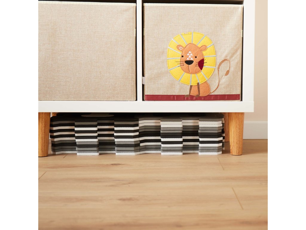Hracia puzzle podložka s abecedou vytvorí deťom bezpečný priestor pre hru a objavovanie! Podložka nie je iba dizajnový prvok, ale vďaka jednotlivým dielikom s písmenami abecedy sa z nej stáva tiež praktická a zábavná hracia plocha. Podložka sa rýchlo zostavuje a je ľahko prenosná – skvelo sa hodí do detskej izby, obývačky aj kuchyne. Možnosti využitia sú nekonečné! Mäkká a bezpečná: Vďaka hrúbke cca 1 cm jemne tlmí nárazy a chráni malé deti pri ich prvých pohybových pokrokoch. Ideálna na tvrdé podlahy pre hranie poležiačky, pri lezení i prvých krôčikoch. Podporuje kreativitu a učenie: stavajte kocky, domčeky alebo sa učte písmenká. Fantázii sa medze nekladú! V kombinácii s číslicovou puzzle podložkou získate XXL hraciu plochu s rozmermi až 192 x 192 cm, ktorá ponúkne ešte viac možností ku hre i vzdelávaniu. Ľahká údržba: vyrobené z netoxickej EVA peny, ktorá je bezpečná pre deti a odolná proti nečistotám. Údržba je jednoduchá – stačí jemne vysať alebo otrieť vlhkou handričkou. • Materiál: EVA pena (netoxická, testovaná na znečistenie) • Veľkosť dielika: 32 x 32 x 0,9 cm • Rozmer podložky: až 192 x 160 cm (podľa zostavenia) • Obsah balenia: 26 písmen/52 dielikov • Odporúčaný vek: od 12 mesiacov (pre menšie deti iba pod dohľadom dospelej osoby) Zhoda s normou: EN-71-1-2-3-9. Nezávisle testované a kontrolované na škodlivé látky.