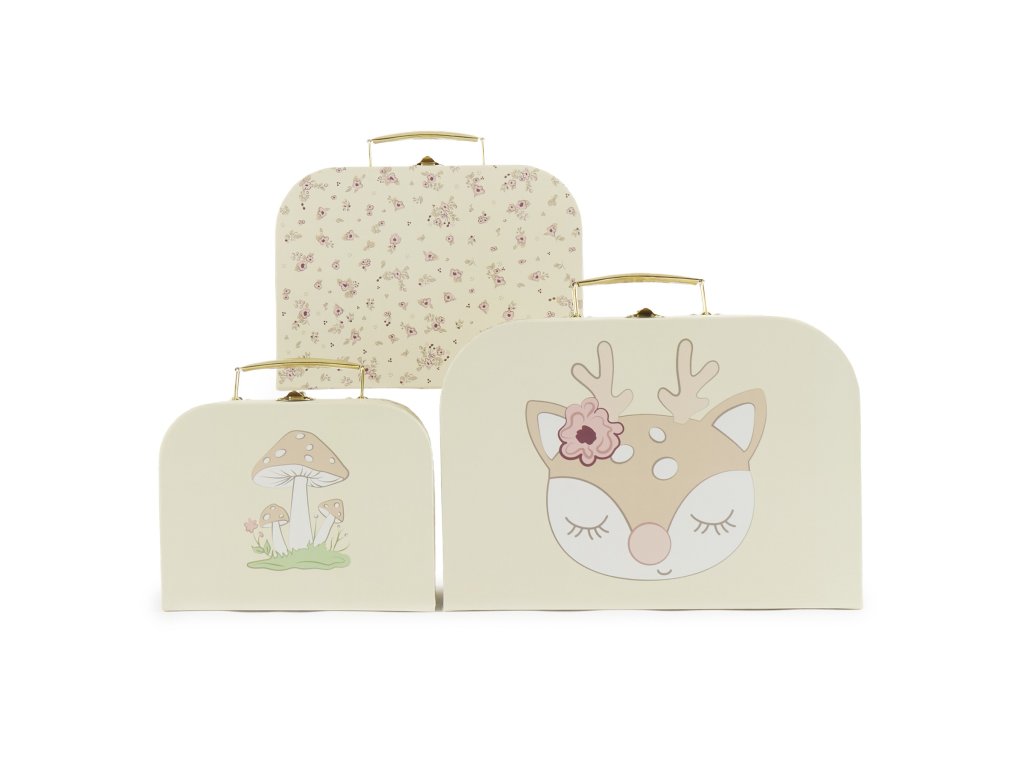 Bieco - Súprava troch kartónových kufríkov - jelenček Ella - vintage flowers