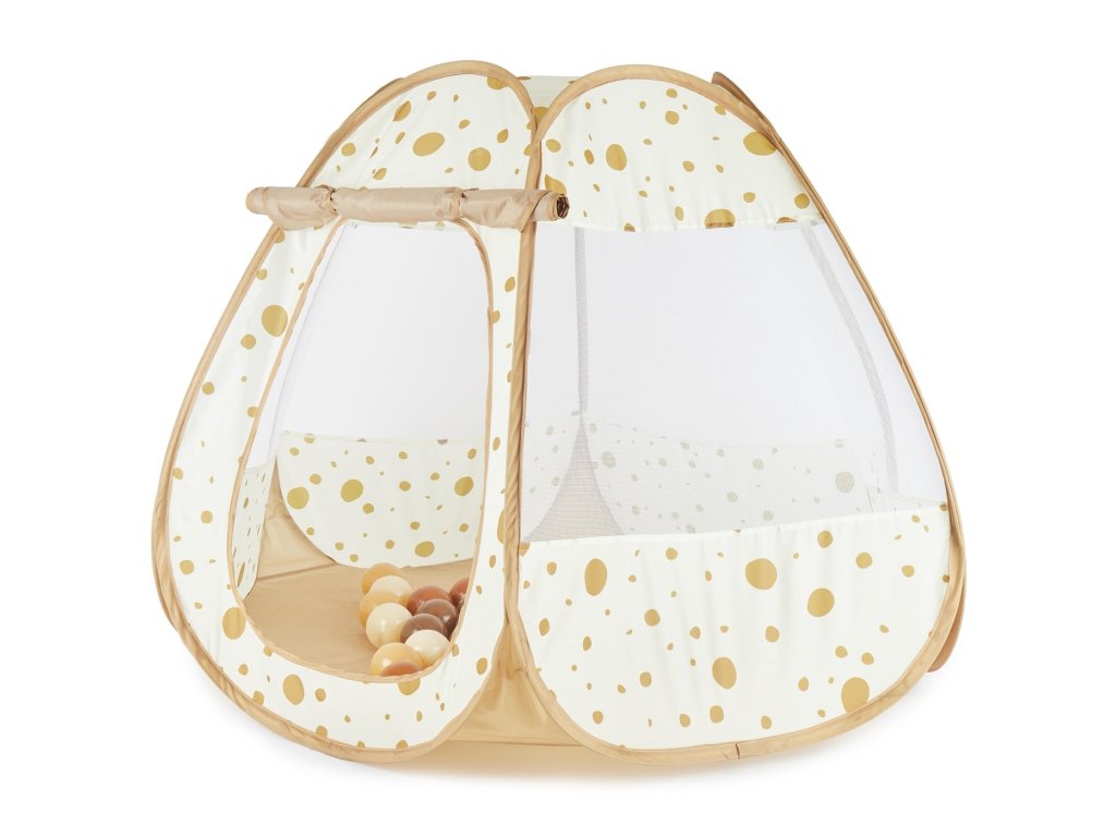 Bieco - Samorozkladací hrací stan a loptičkový box 2v1 - dots