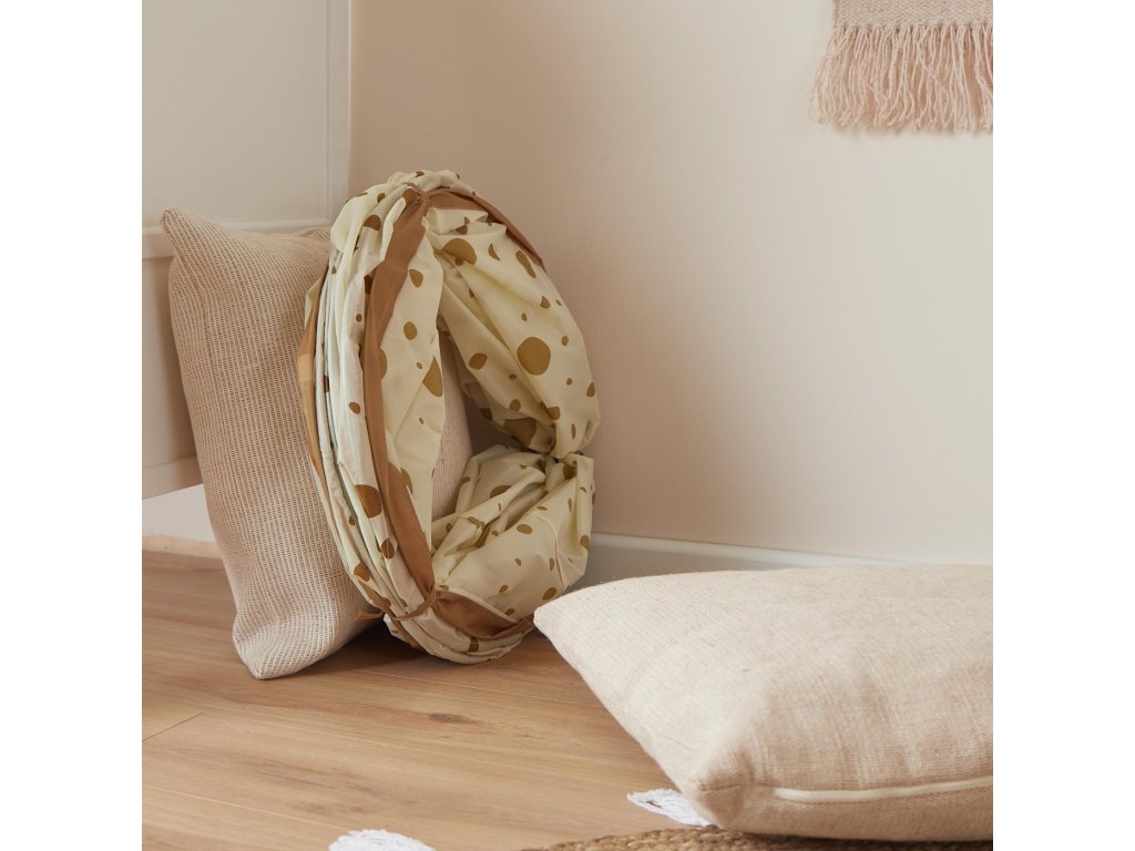 Hrací tunel je ideálny na preliezanie a skrývanie. Skladací vyskakovací tunel možno postaviť počas niekoľkých sekúnd alebo uložiť, aby sa ušetrilo miesto a sprevádza malých dobrodruhov vo vnútri aj vonku. Tunel je vyrobený z odolného polyesteru a je zvlášť robustný a ľahko sa čistí. Kolekcia Dots obsahuje teplé karamelové tóny, ktoré premenia detskú izbu na útulné miesto, kde sa budete cítiť dobre. • Materiál: polyester • Rozmer: priemer 46 cm, dĺžka 180 cm • Údržba: čistite vlhkou handričkou a jemným mydlom. Odporúčaný vek: odporúčame od cca 12 mesiacov, keď už vaše dieťa vie bezpečne sedieť. Pozor, montáž musí vykonávať dospelá osoba. Tunel sa otvára extrémne rýchlo. Používajte iba pod dohľadom dospelej osoby. Zhoda s normou: EN-71-1-2-3. Nezávisle testované a kontrolované na škodlivé látky.