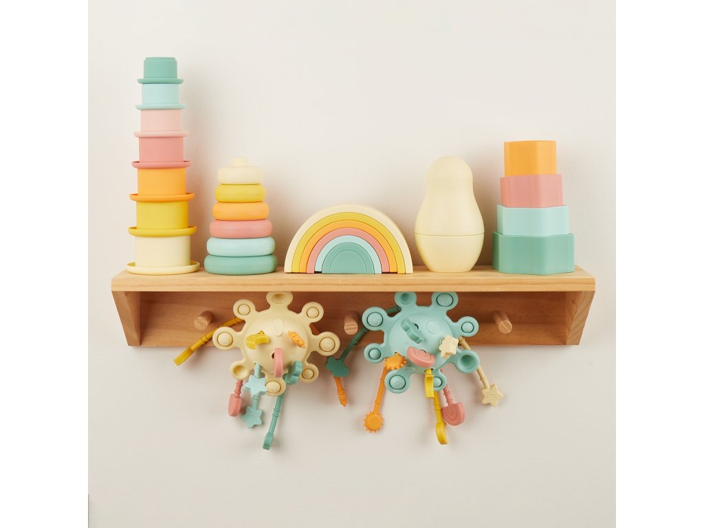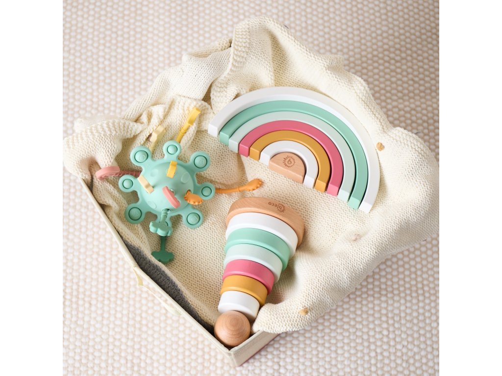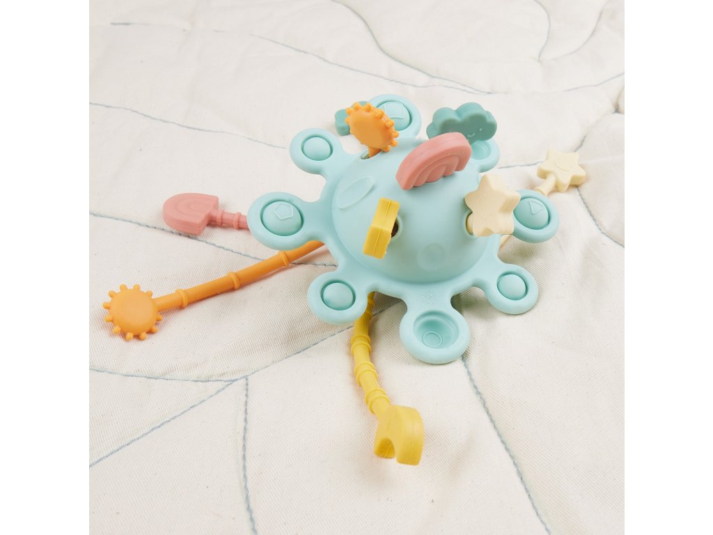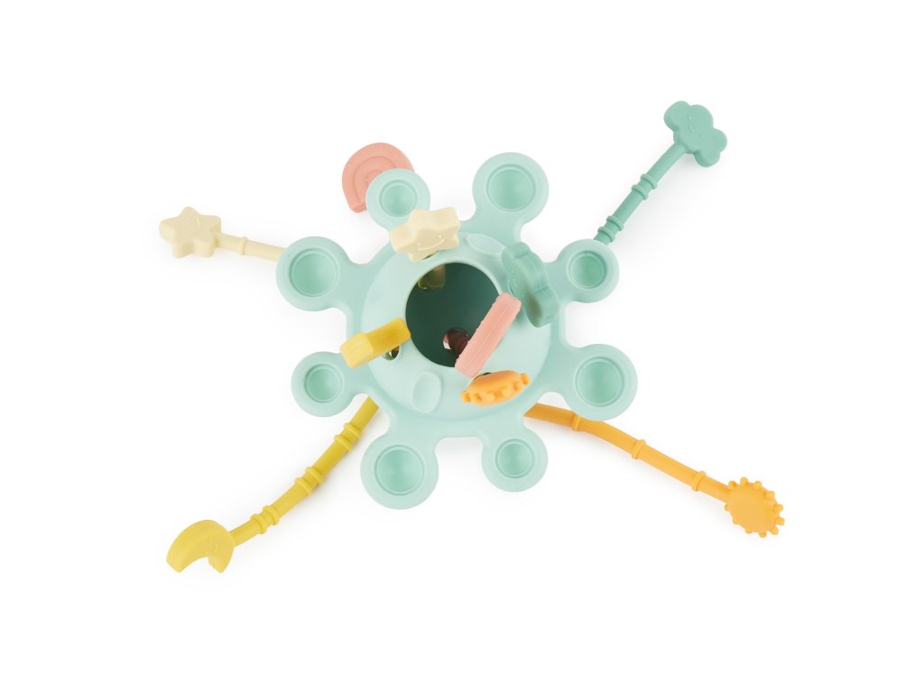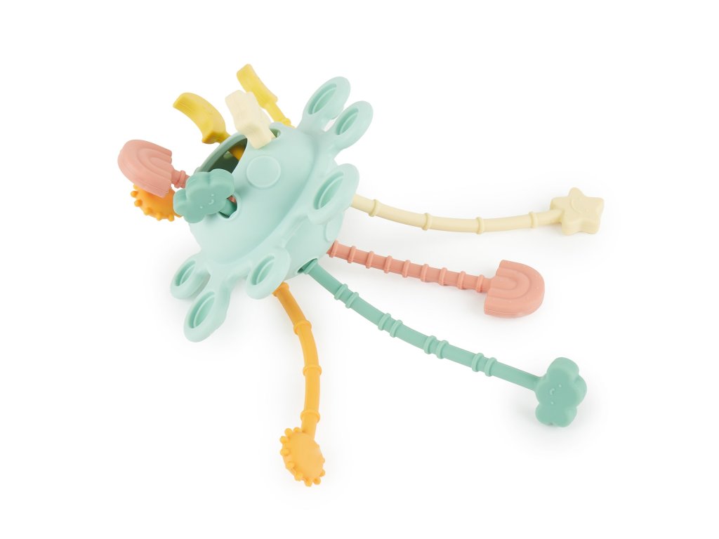 Montessori hračka pre malých objaviteľov od 12 mesiacov je vyrobená z prémiového 100 % silikónu bez BPA a ftalátov. Táto hračka podporuje jemnú motoriku, koordináciu ruka-oko a zvedavosť vďaka širokej škále zábavných prvkov. Robustné silikónové preťahovacie šnúrky môžu deti ťahať tam a späť. Pretlačovacia aktivita posilňuje svaly malých prstíkov. Povrch hračky tiež láka deti skúmať a dotýkať sa. Vďaka ľahkému čisteniu a všestranným možnostiam je hračka ideálnym spoločníkom na cesty. • Materiál: silikón • Rozmer: 13,5 x 13,5 x 21 cm • Odporúčaný vek: od 12 mesiacov Pozor, používajte iba pod dohľadom dospelej osoby. Zhoda s normou: EN-71-1-2-3. Nezávisle testované a kontrolované na škodlivé látky.