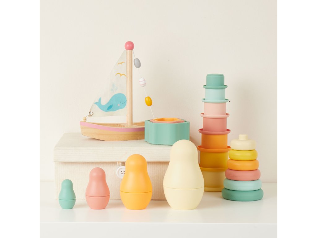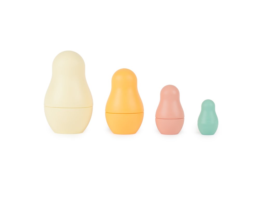 Podporte detskú fantáziu a zábavné učenie s touto skvelou silikónovou matrioškou! Deti môžu bábiky skladať do seba od najmenšej po najväčšiu, triediť podľa veľkosti alebo sa s nimi nápadito hrať. Vďaka dizajnu prispôsobenému pre malé detské ručičky si deti ľahko poradia s ich manipuláciou. Moderné pojatie tradičnej hračky prirodzene podporuje jemnú motoriku, logické myslenie a rozvoj kreativity. Navyše je vyrobená zo 100 % silikónu – mäkkého, odolného proti rozbitiu a úplne bezpečného pre malé deti. Skvelá voľba pre hranie doma aj vonku! • Obsah balenia: 4 matriošky zložené zo 7 dielov • Rozmery: 6,5 x 6,5 x 12,5 cm • Ľahká údržba: stačí voda a jemné mydlo • Odporúčaný vek: od 12 mesiacov Pozor, používajte iba pod dohľadom dospelej osoby. Zhoda s normou: EN-71-1-2-3. Nezávisle testované a kontrolované na škodlivé látky.Dodatočné parametre