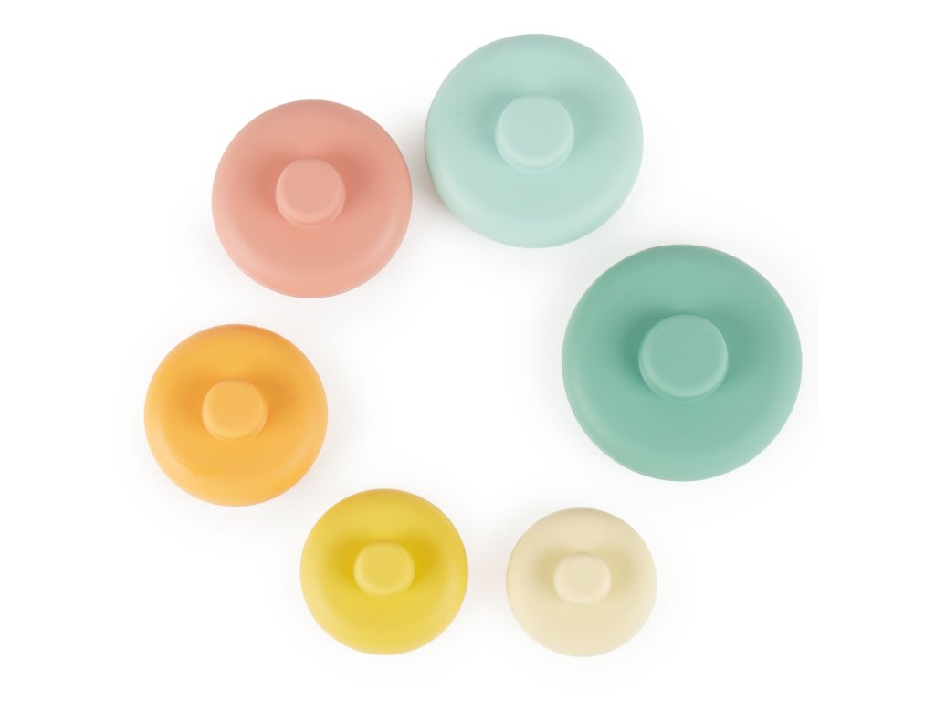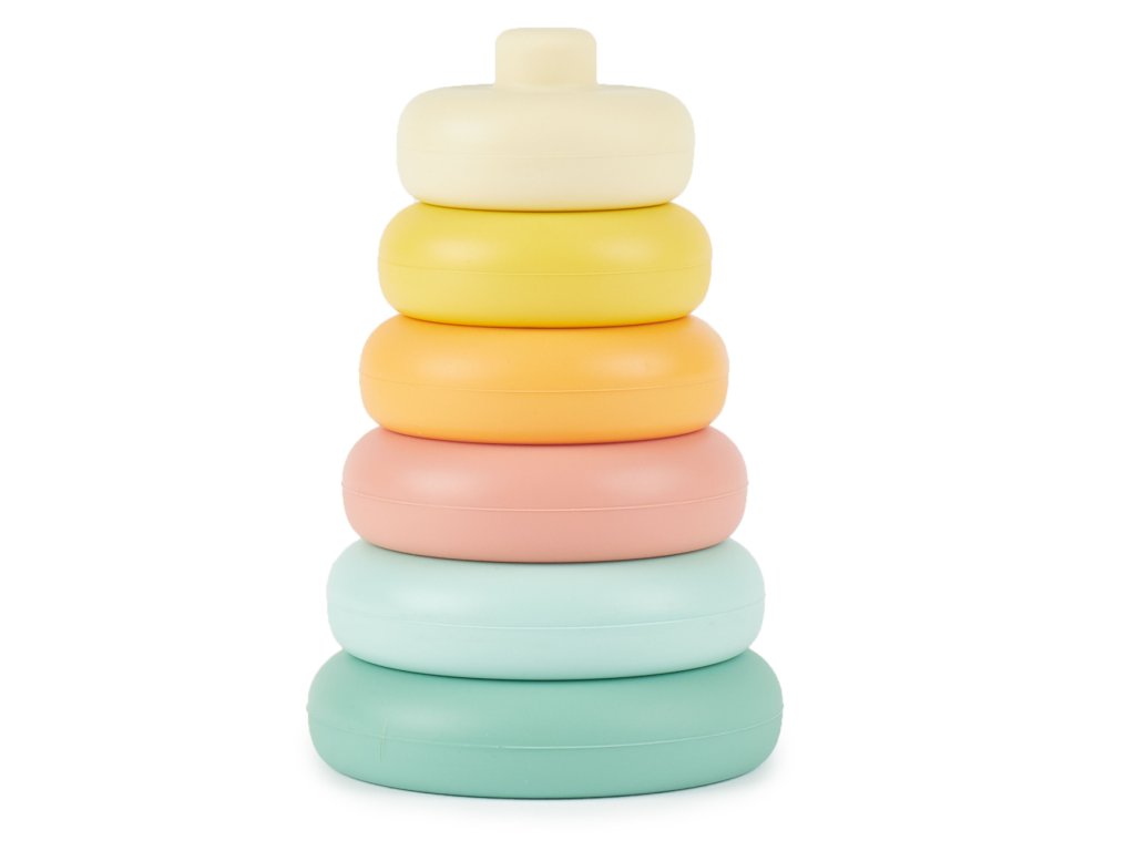Kreatívna hračka pre malých staviteľov od 12 mesiacov. Podporte detskú zvedavosť a motorické zručnosti s touto šesťdielnou silikónovou stohovacou súpravou. Veža ponúka mnoho možností stavania, triedenia a objavovania farieb. Vhodná tiež ako zábavný spoločník do vane! Rozvoj zručností: Perfektná hračka pre tréning jemnej motoriky, koordinácie rúk a očí aj rozpoznávanie farieb. Odolná a ľahká údržba: Vyrobené zo 100 % bezpečného silikónu, ktorý je odolný proti rozbitiu a ľahko sa čistí vodou a jemným mydlom. Univerzálna zábava: ideálna pre hranie doma i vonku, nech už v obývačke, na záhrade alebo v kúpeľni. • Rozmery: 8 x 8 x 12 cm • Materiál: 100 % silikón • Odporúčaný vek: od 12 mesiacov Pozor, používajte iba pod dohľadom dospelej osoby. Zhoda s normou: EN-71-1-2-3. Nezávisle testované a kontrolované na škodlivé látky.