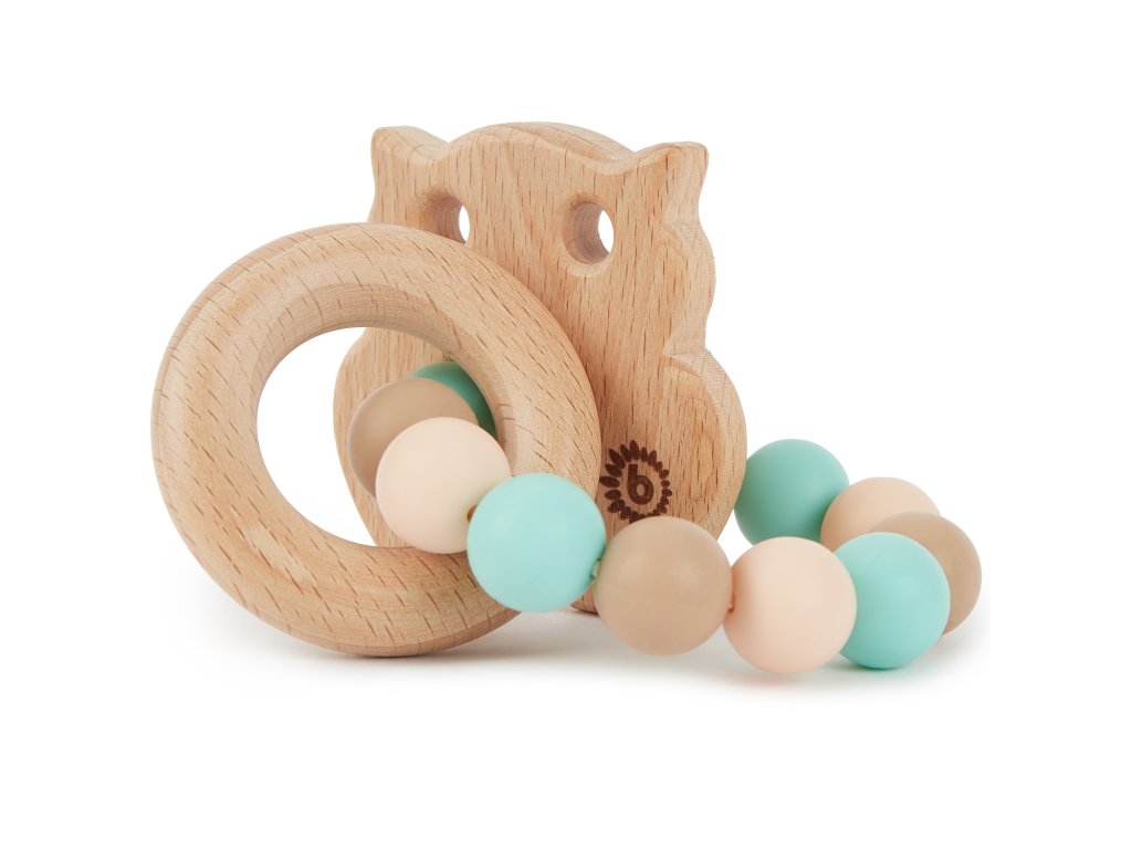 Bieco - Silikónové hryzadielko s drevenou sovou