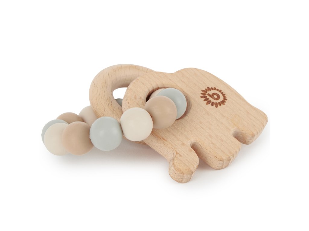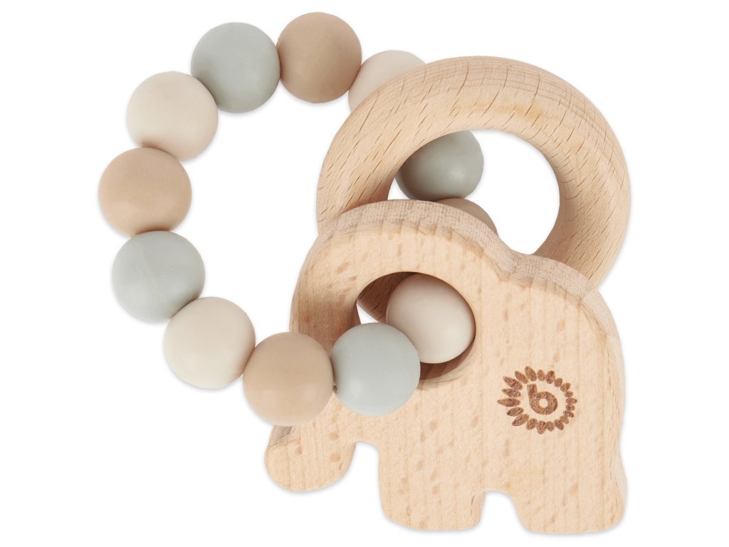 Bieco - Silikónové hryzadielko s dreveným slonom