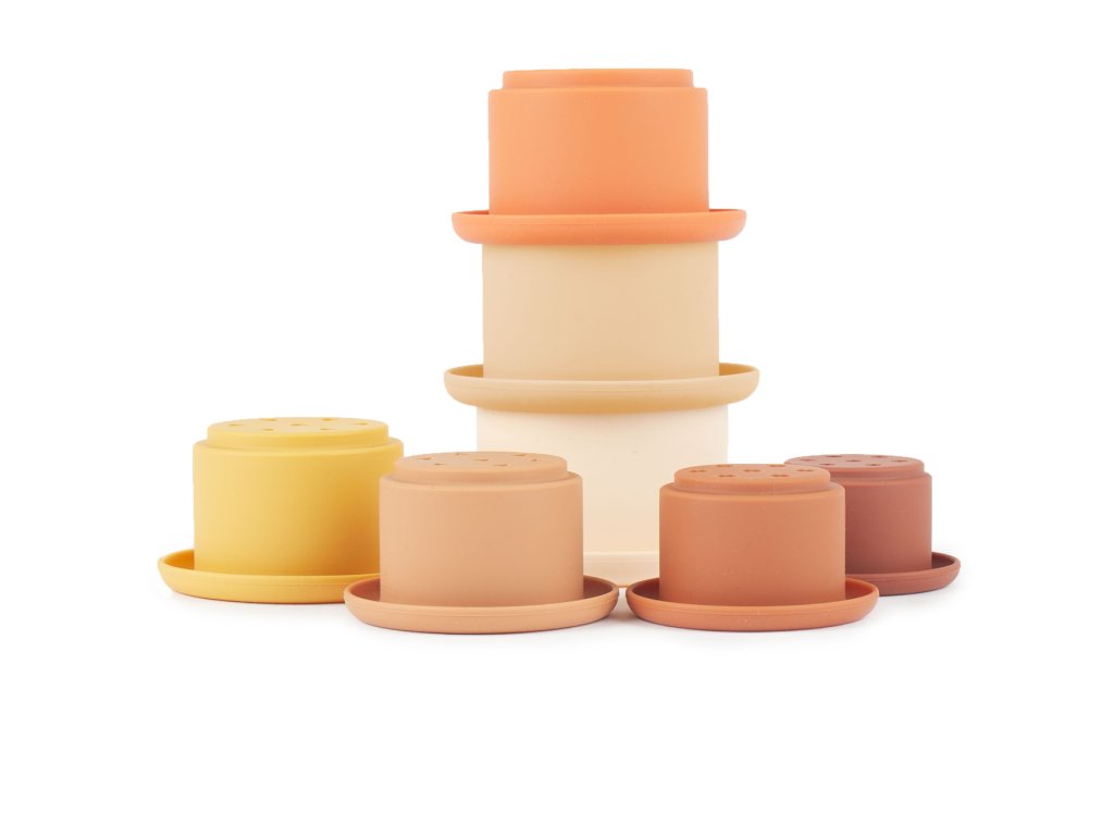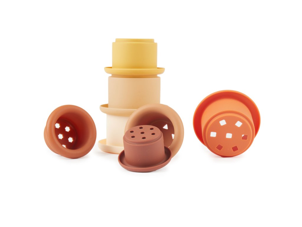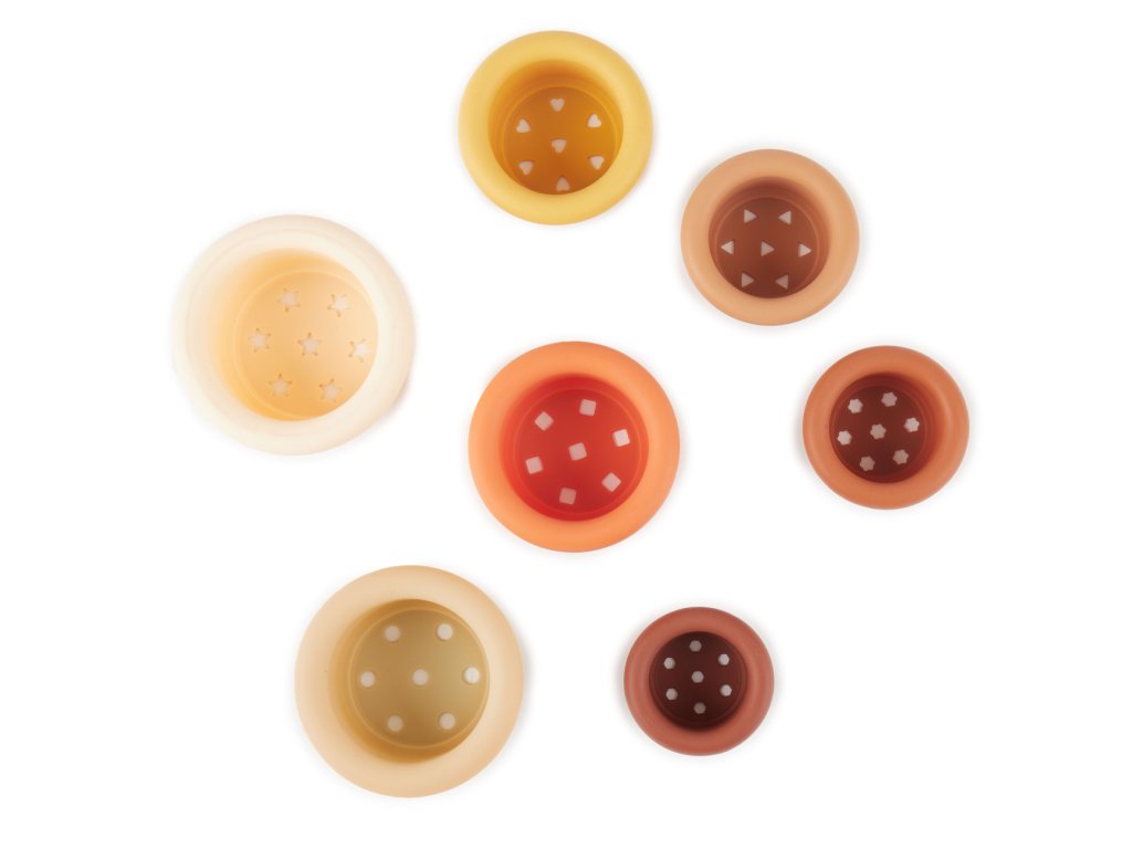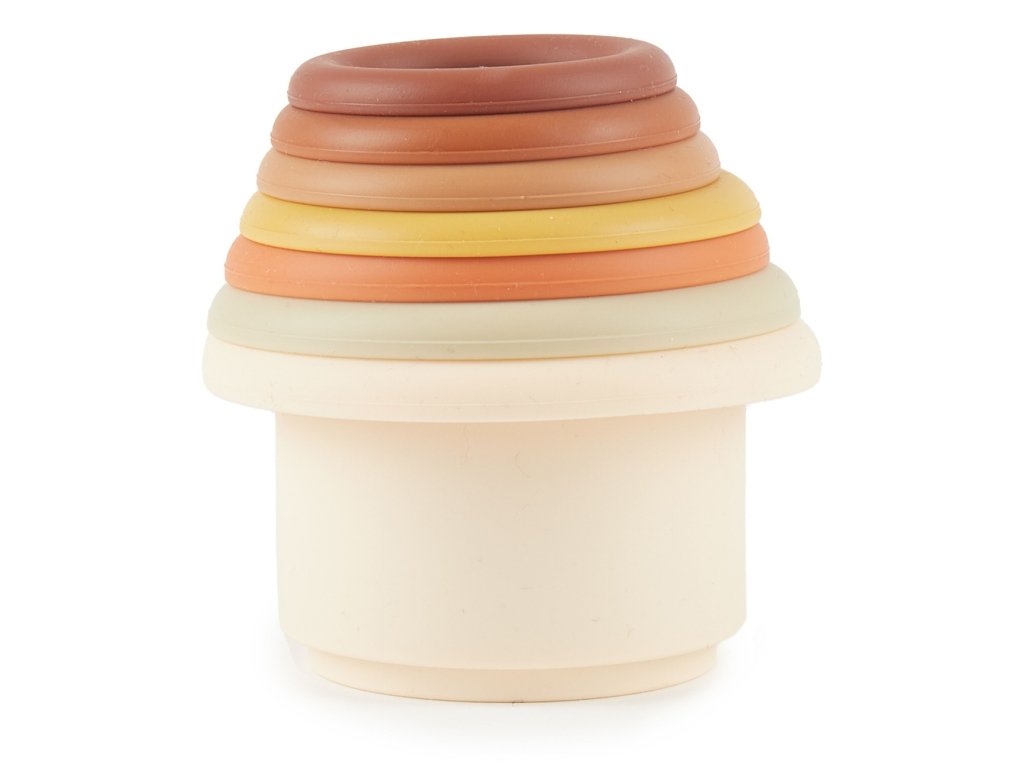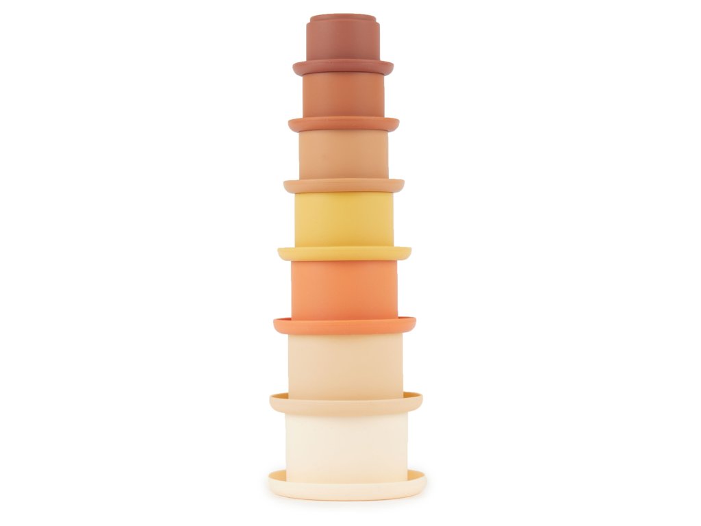 Sedemdielna stohovacia súprava téglikov zo 100 % silikónu. Skladanie a stavanie dielikov podporuje koordináciu a jemnú motoriku. Silikón je bezpečný a odolný proti rozbitiu a ľahko sa čistí vodou a jemným mydlom. Hračku využijú deti i pri večernom kúpaní, v bazéne alebo na pláži. Silikónové hračky sa hodia do interiéru i exteriéru. • Materiál: silikón • Veľkosť: 8 x 8 x 7,5 cm (výška po zložení: 23,5 cm) • Odporúčaný vek: od 12 mesiacov Pozor, používajte iba pod dohľadom dospelej osoby. Zhoda s normou: EN-71-1-2-3. Nezávisle testované a kontrolované na škodlivé látky.