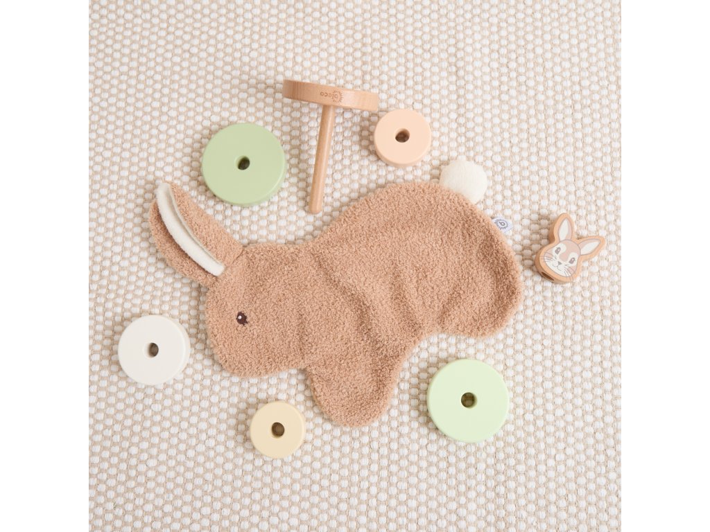 Nechajte svoje bábätko objaviť maznavú dečku s motívom králička. Uspávačik v podobe jemného maznáčika sa stane skvelým spoločníkom pre vaše bábätko od prvých dní života. Hebký materiál je príjemný na dotyk a ľahko sa uchopí aj najmenšími ručičkami. Textúrovaná látka a šuštivé ušká stimulujú zmysly a podporujú skúmanie sveta. Maznáčik vášmu bábätku uľahčí zaspávanie a navodí v postieľke pocit bezpečia. • Materiál: polyester • Rozmer: 26 x 34 x 1 cm • Starostlivosť o produkt: perte iba v rukách, nedávajte do sušičky • Odporúčaný vek: od 0 mesiacov Pozor, používajte iba pod dohľadom dospelej osoby. Tento výrobok je testovaný a vyhovuje európskemu štandardu EN 71. Nezávisle testované a kontrolované na škodlivé látky.