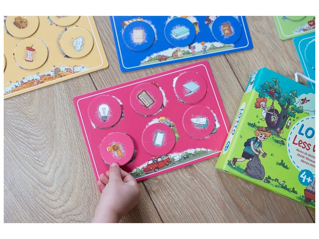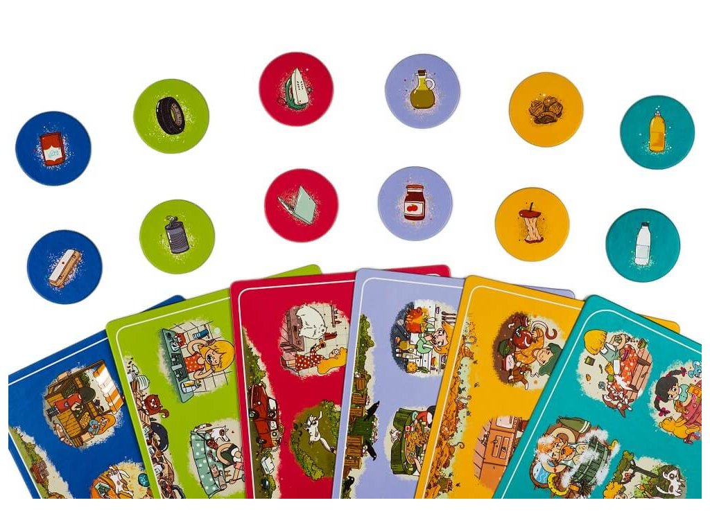 Čo sa stane s vecami, ktoré hodíte do koša? Rozhodne ako kúzlom nezmiznú! Vedeli ste, že veľkú časť surovín používaných na výrobu predmetov a obalov možno získať späť a znovu použiť? To pomáha znížiť veľkosť skládok a chrániť životné prostredie. Táto hra vás poučí o recyklácii a urobí z vás majstra triedenia odpadu. Dajte odpadkom nový život! Jednoduchá hra pre 1 – 6 hráčov už od 4 rokov s roztomilými ilustráciami. Hra má štyri varianty náročnosti. Základný princíp je pri všetkých herných možnostiach rovnaký. Úlohou detí je priradiť žetóny na správne miesta na svojom hernom pláne. O jednotlivých obrázkoch sa môžete s deťmi aj porozprávať a zábavným spôsobom tak rozširovať ich slovnú zásobu. Doba jednej hry je 10 až 20 minút. Na herných doskách sú zobrazené predmety dennej potreby, ktoré zodpovedajú základným druhom recyklovateľného odpadu. Ide o plast, papier, sklo, bioodpad a elektronický odpad. Na poslednej doske sú nápady na neobvyklé využitie vecí, ktoré už nepotrebujeme. Predmety, ktoré sa na doskách nachádzajú, sú dobre ukryté. Ďalšie varianty hry umožnia hráčom dosiahnuť ďalšie úrovne pokročilosti. Farby herných dosiek a žetónov sú tu kvôli hre: nemusia zodpovedať skutočným farbám kontajnerov (tieto farby sa v rôznych krajinách a mestách líši).