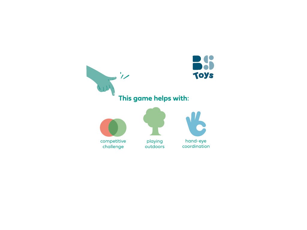 Hra podporuje: súťažnú výzvu • hranie vonku • koordináciu ruka-oko • motoriku