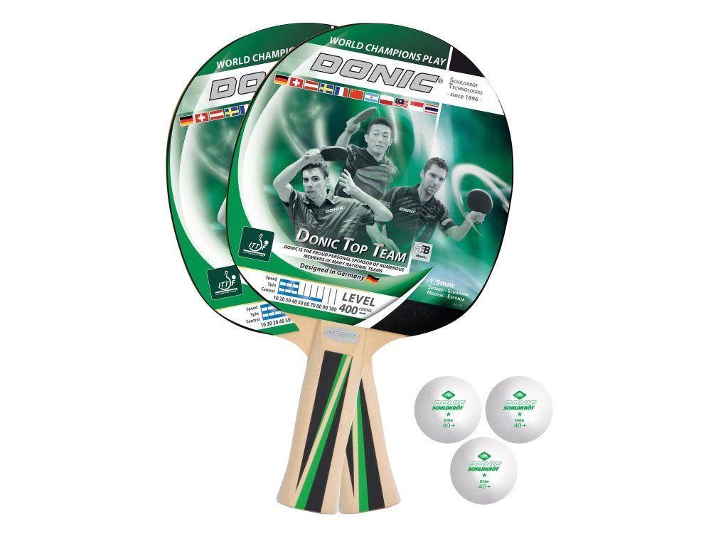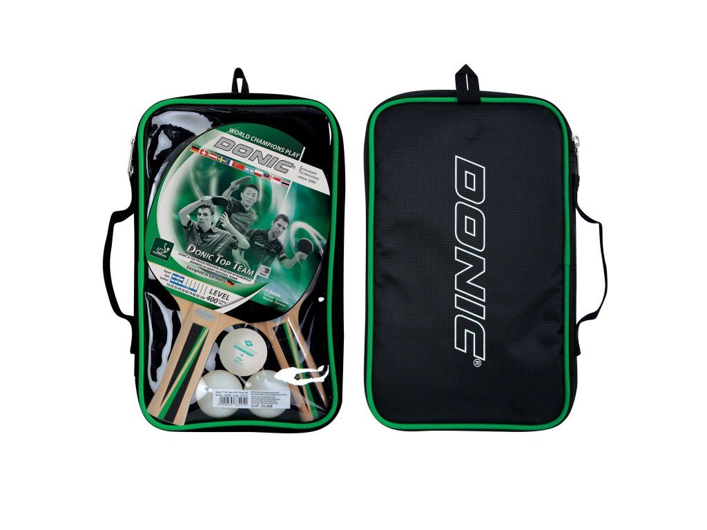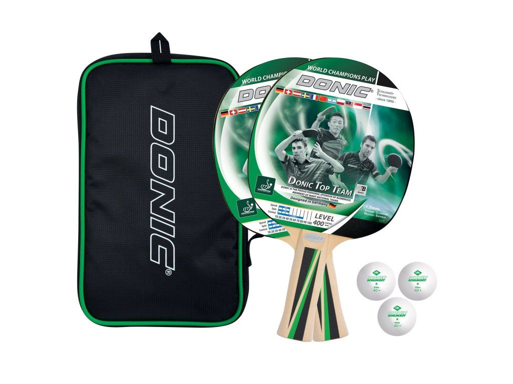 Skvelá súprava na stolný tenis obsahuje 2 pálky Top Team 400 a 3 loptičky (priemer 40 mm). Súprava je ideálna pre hráčov s dobrou základnou technikou a kontrolou loptičky. Je vhodná pre rekreačnú hru aj školské kluby. Všetko je uložené v praktickom obale na zips.