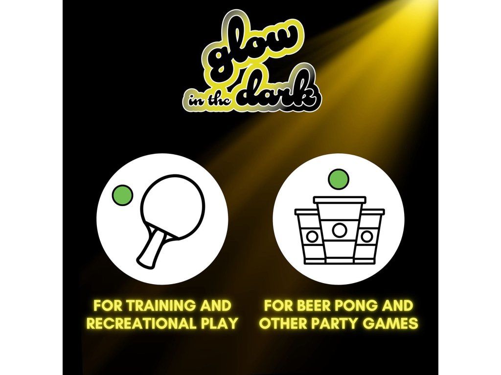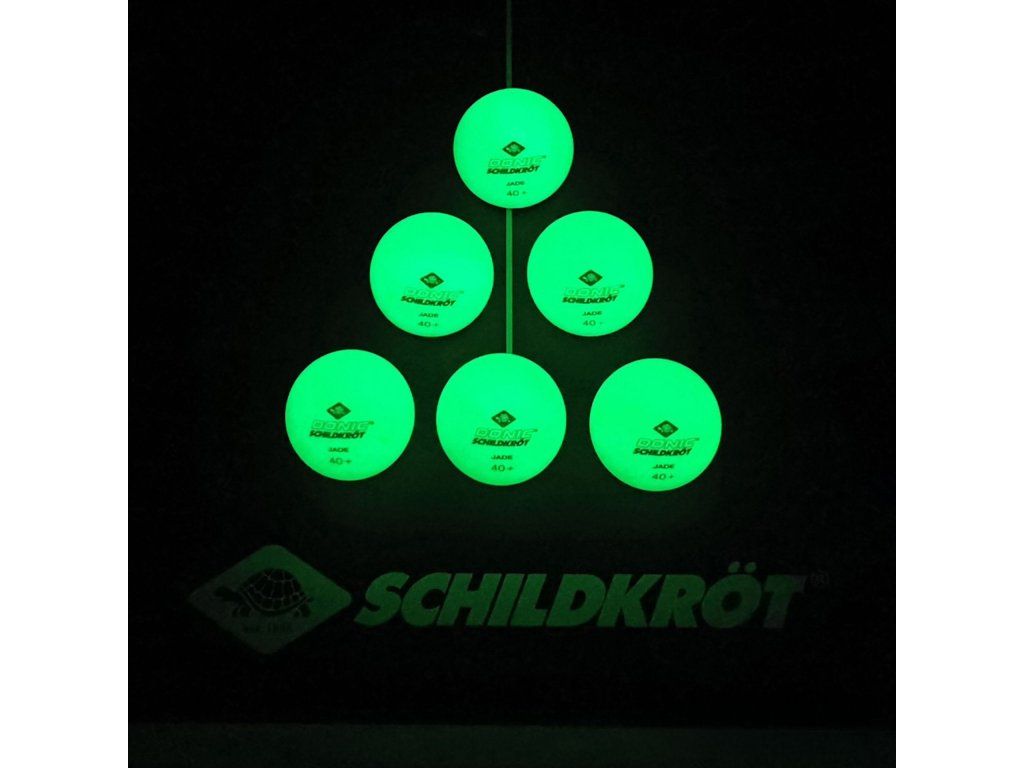 Loptičky na stolný tenis Schildkröt svietiace v tme, sú ideálne na hranie nielen za dňa, ale aj za súmraku. Vďaka fluorescenčnému materiálu, ktorý sa ľahko nabíja za denného svetla, môžu loptičky svietiť v tme. Táto súprava obsahuje 6 svetlozelených, fluorescenčných loptičiek s priemerom 40 mm, vyrobených z kvalitného materiálu Poly 40+. Loptičky sa hodia nielen pre amatérskych hráčov, ktorí požadujú skvelý výkon za priaznivú cenu.