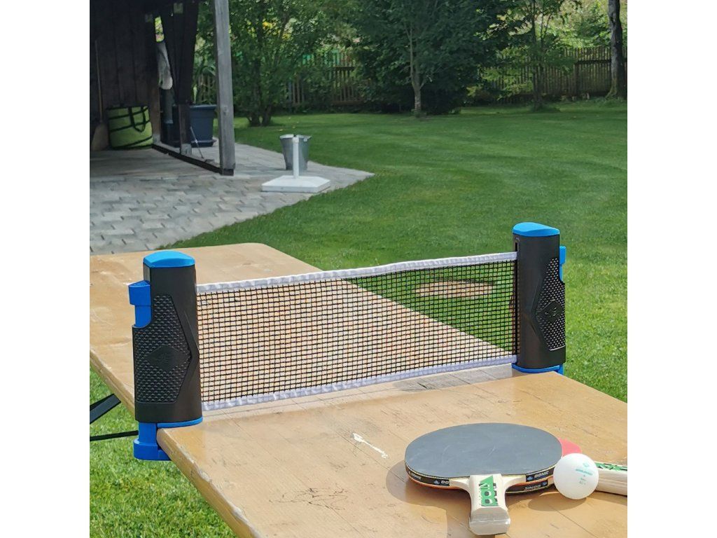 Táto inovatívna sieť je navrhnutá pre ľahkú a rýchlu inštaláciu na stoly do šírky až 175 cm. S automatickým odvíjacím mechanizmom a pružinovými svorkami na oboch plastových tyčiach sa sieť ľahko pripevní na stôl a zaisťuje pevné uchytenie vďaka gumovým podložkám. Maximálna hrúbka stola je 4 cm. Sieť je ideálna pre rýchle hranie stolného tenisu kdekoľvek. Nech už v kancelárii, kuchyni, jedálni alebo dokonca na školskej lavici. Montáž trvá len niekoľko sekúnd, čo vám umožní spontánne si zahrať bez nutnosti investície do kompletného pingpongového stolu. Celá súprava je zabalená v taške so zipsom a rukoväťou pre ľahké prenášanie a uskladnenie. Sieť je vyrobená z odolného nylonu, ktorý je vhodný pre vnútorné aj vonkajšie použitie, a jej dĺžku možno ľahko prispôsobiť. Sieť je cenovo výhodnou alternatívou k plne vybaveným stolom a umožňuje vám hrať stolný tenis takmer kdekoľvek. Ideálna pre dovolenky, kancelárie či domácnosti, kde nie je priestor pre stály stôl. Rozmery balenia: 21 x 15,5 x 7 cm Hmotnosť: 0,445 kg