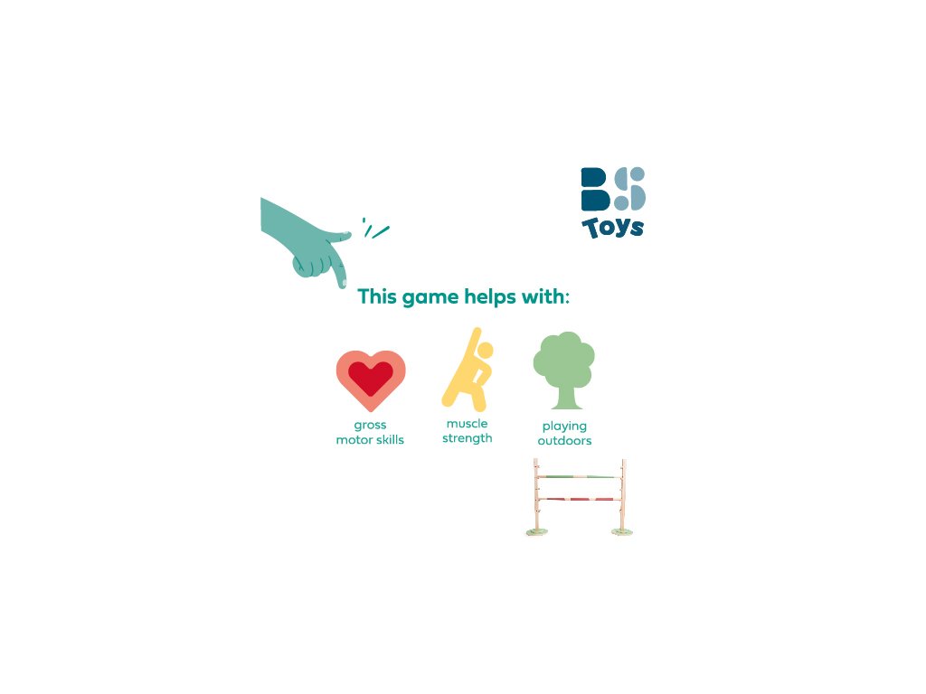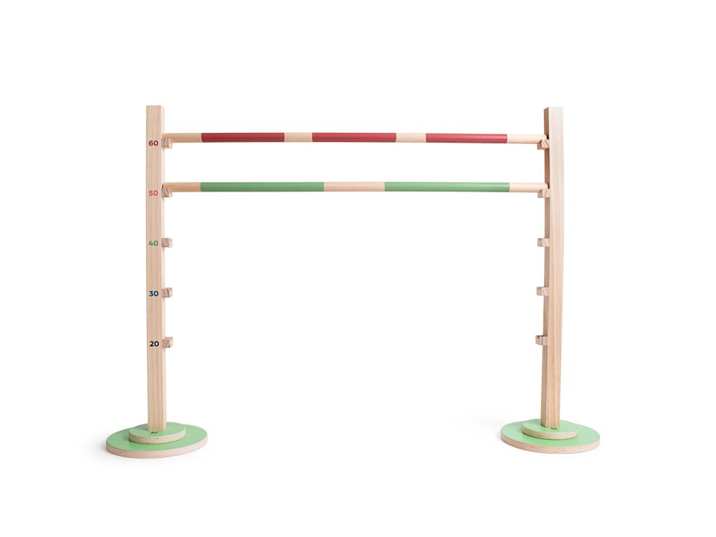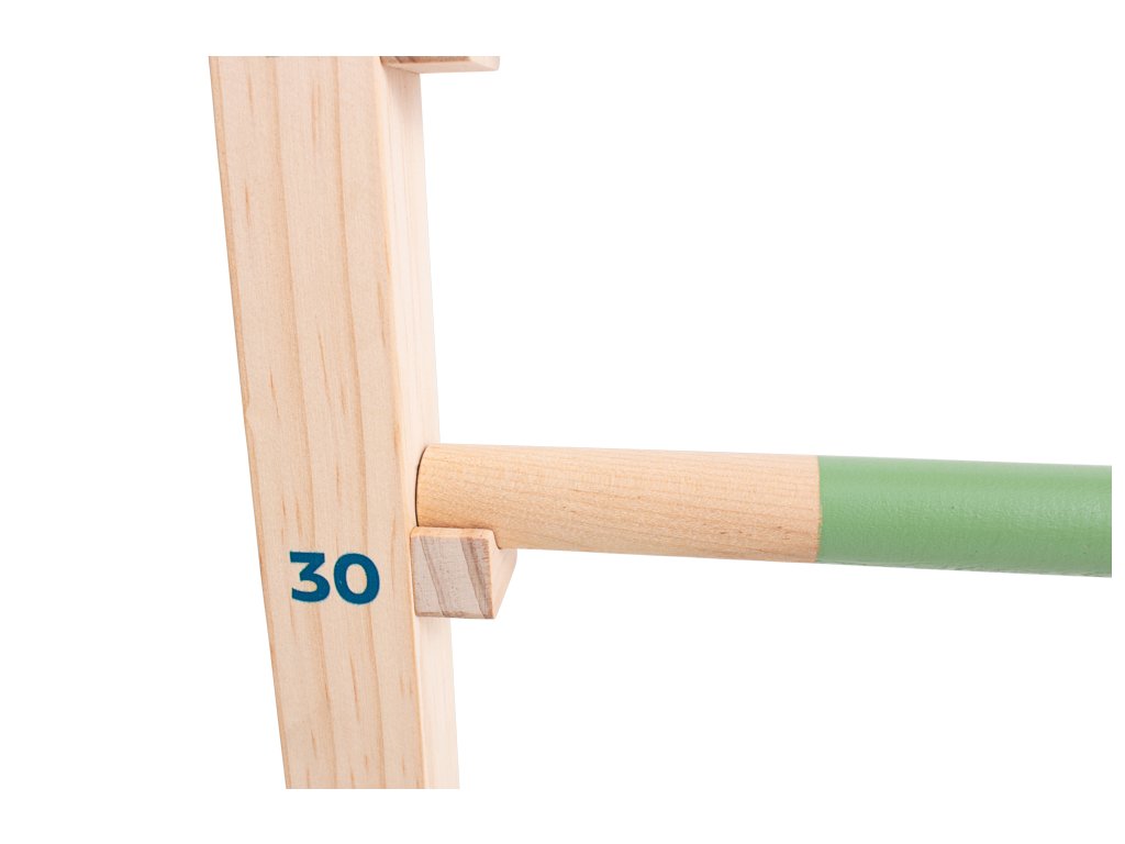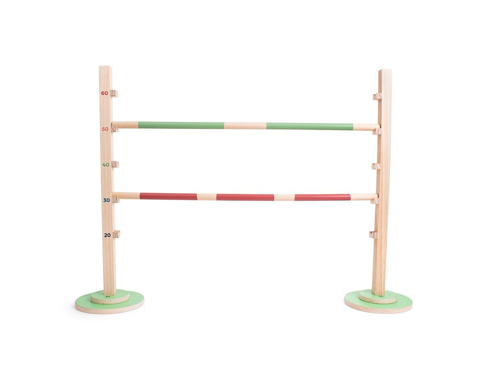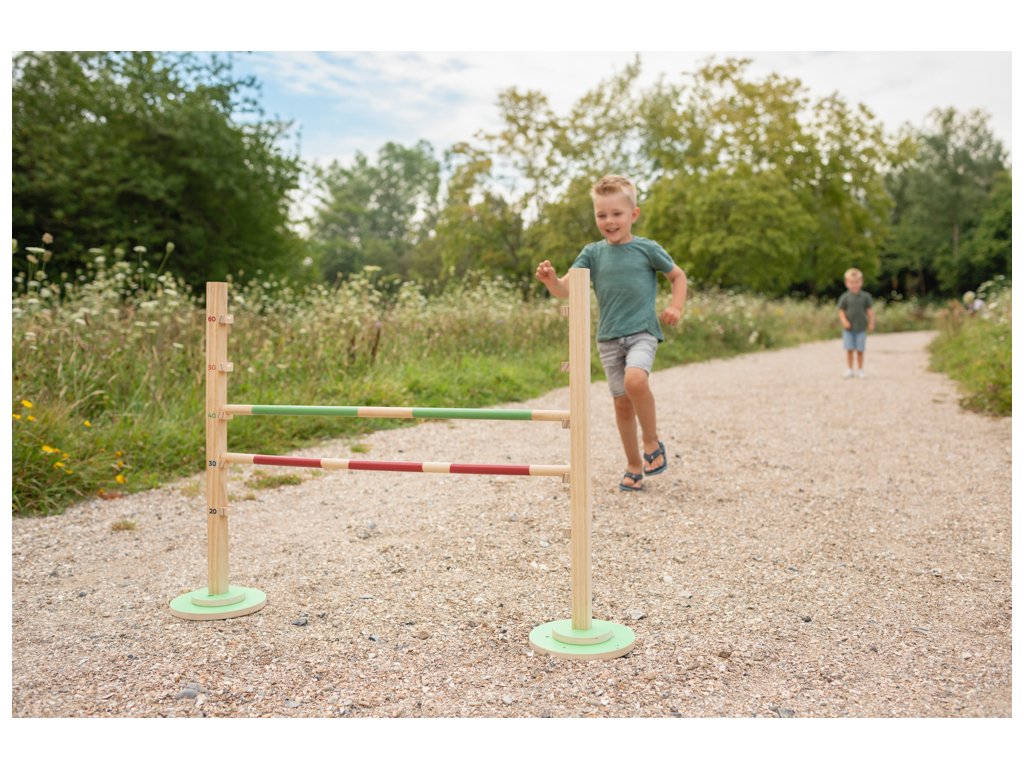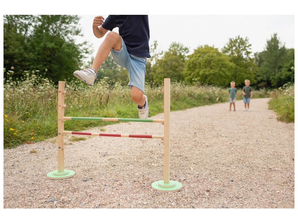 Rozviňte svoje zručnosti a odvahu s touto drevenou skokovou prekážkou! Začnite na nižšej výške a postupne prekonávajte väčšie výzvy. Hra je ideálna pre vonkajšie aktivity, ktoré podporujú rozvoj hrubej motoriky, posilňujú fyzičku a zlepšujú koordináciu. Stabilná základňa a ľahko nastaviteľné tyče zaručujú bezpečnosť pri tréningu. Súťažte, kto preskočí najvyššiu prekážku, a užite si množstvo zábavy! Určené pre deti od 6 rokov.