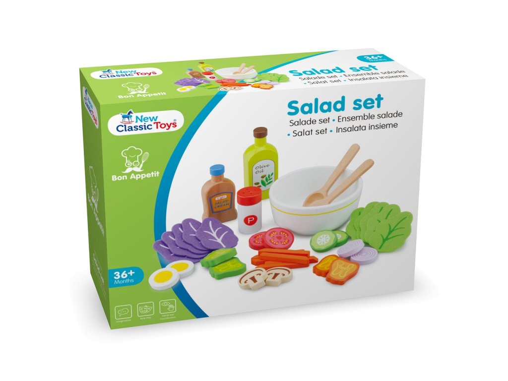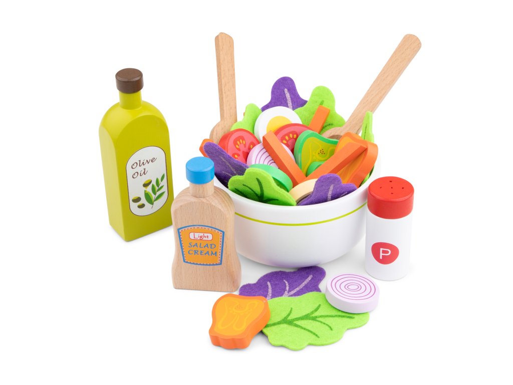 Má váš malý šéfkuchár vášeň pre varenie a bujnú fantáziu? Súprava je perfektnou hračkou, ktorá spojí radosť z tvorenia s učením! Táto súprava obsahuje všetko, čo malý kuchár potrebuje na prípravu chutných šalátov. Nechýba šalátová misa, príbory, korenička, fľaštičky so zálievkou a olivovým olejom, ani rozmanité ingrediencie: listy šalátu, tyčinky mrkvy, plátky húb, vajíčok, uhorky, paradajok, červenej cibule a papriky. Táto hračka podporuje kreativitu a jemnú motoriku. Deti sa môžu zapojiť do hier na varenie, vymýšľať vlastné recepty a užiť si zábavu vo svojej detskej kuchynke. Súprava navyše pomáha rozvíjať sociálne interakcie, keď sa deti spoločne hrajú a majú vzájomnú radosť zo svojich kulinárskych výtvorov. S touto súpravou získajú deti nekonečné hodiny zábavy a učenia v jednom. Parametre: • rozmery: 120 x 120 x 60 mm.