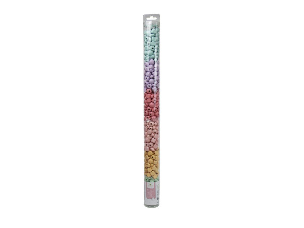 Drevené pastelové koráliky v tube, 300 ks