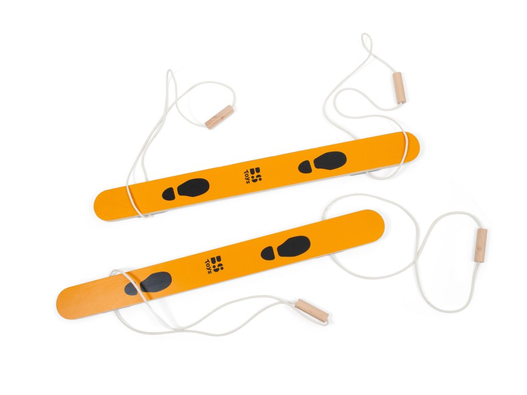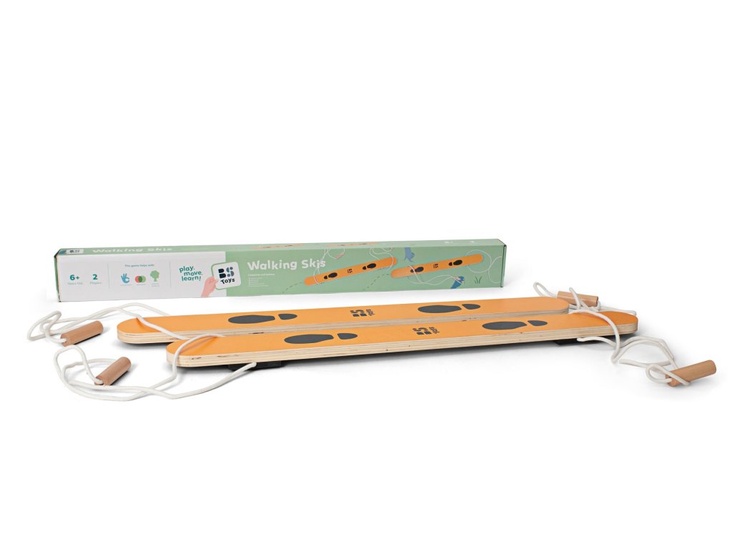 Precvičte si rovnováhu bláznivou chôdzou na týchto drevených lyžiach. Skúste skoordinovať spoločnú chôdzu bez toho, aby ste spadli. Pohybová aktivita pre deti od 6 rokov zlepšuje rovnováhu a koordináciu vďaka synchrónnej chôdzi dvoch hráčov. Lyže sú vyrobené z dreva s pevným lanom s úchytmi.