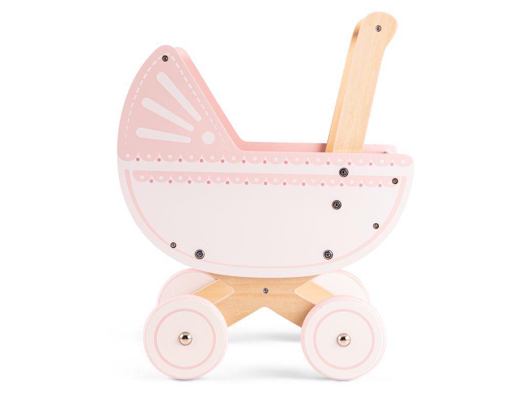 Okúzľujúci drevený kočík pre bábiky, ktorý je ideálny pre dlhé relaxačné prechádzky s obľúbenou bábikou alebo plyšovým kamarátom. Kočík je vybavený mäkkou dekou a vankúšikom, takže bábiky môžu vždy pohodlne v teple odpočívať. S týmto kočíkom pre bábiky môžu deti popustiť uzdu svojej fantázii a zažiť najrôznejšie dobrodružstvá so svojimi obľúbenými bábikami. Deti môžu tiež napodobňovať mamičku v starostlivosti o mladšieho súrodenca. Tento kočík pre bábiky je nielen zábavný na hranie, ale tiež krásny doplnok do detskej izby. Hra na starajúceho sa rodiča učí deti porozumieť svetu okolo nich a rozvíjať sociálne zručnosti prirodzeným spôsobom. Kolieska kočíka sú vybavené gumou, vďaka tomu sa kočík pohybuje ticho a plynulo. Je perfektný pre bábiky a plyšiaky do veľkosti 38 cm. S držadlom vo výške 50 cm je kočík ideálnou voľbou pre deti od 3 rokov. Parametre: rozmery kočíka sú 410 x 240 x 460 mm.