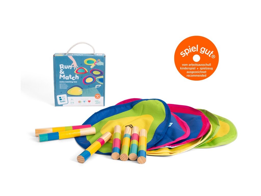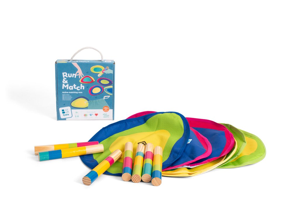 Cieľom hry je ako prvý dobehnúť ku správnej podložke. Rozhoďte podložky na zem – buď voľne, alebo v kruhu. Deti vytiahnu jednu tyčinku z vrecka. Potom bežia k podložke, ktorá sa farbou zhoduje s tyčinkou. Kto sa k podložke dostane prvý, získava bod.