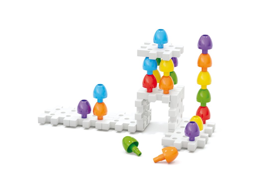 Zábavná didaktická mozaika určená deťom od 2 rokov. Veľké farebné, stohovateľné hríbiky povzbudzujú deti k tvorbe prvých obrázkov pomocou mozaiky alebo ku stavbe veží. Skvelá hra, ktorá rozvíja kreativitu a manuálnu zručnosť.