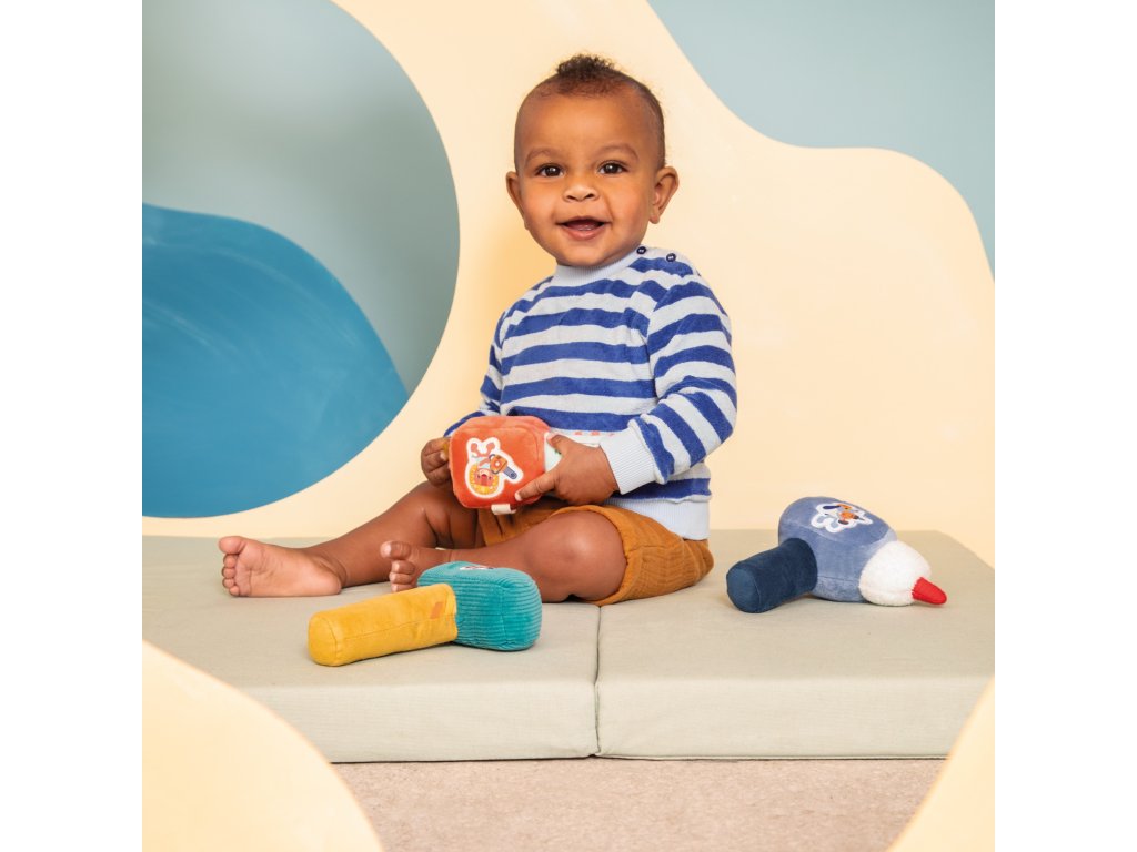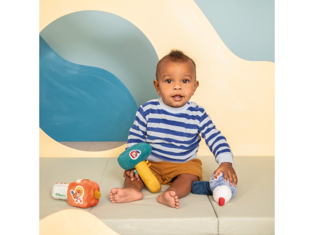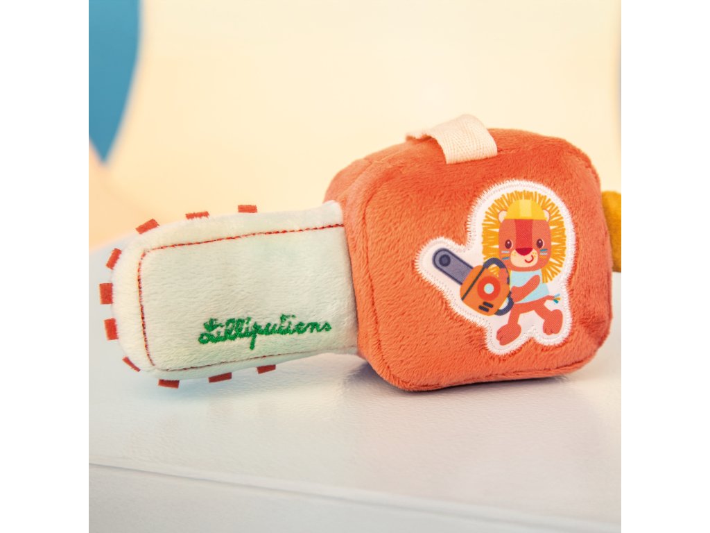 Prvá detská hračka pre majstrov! Táto hrkálka v tvare motorovej píly je vhodná už od 3 mesiacov. Vaše dieťa si nepochybne zamiluje hru, že reže pílou ako dospelý, rovnako ako náš kamarát lev Jack. Okrem stimulácie zmyslov tých najmenších, táto plyšová hrkálka podporuje fantáziu a aktívne napodobňovanie. Je vyrobená z polyesteru a je povrchovo umývateľná. Materiál: polyester. Rozmery: 9 cm x 4,5 cm x 5 cm.