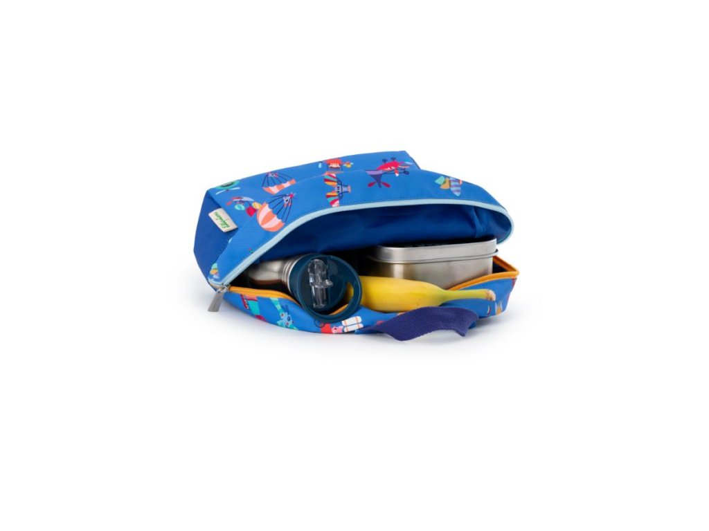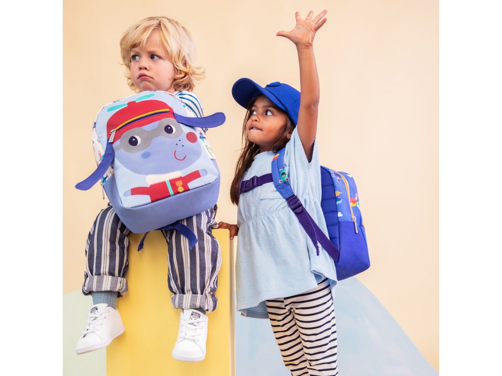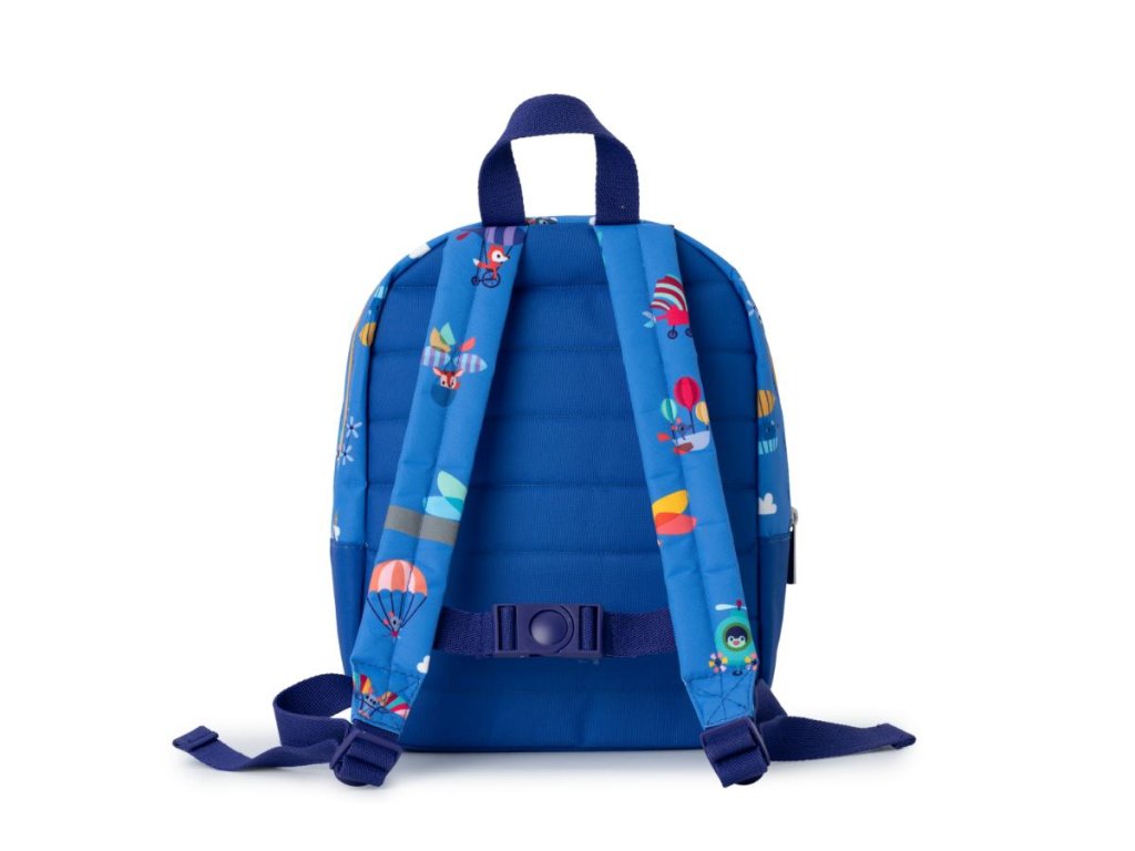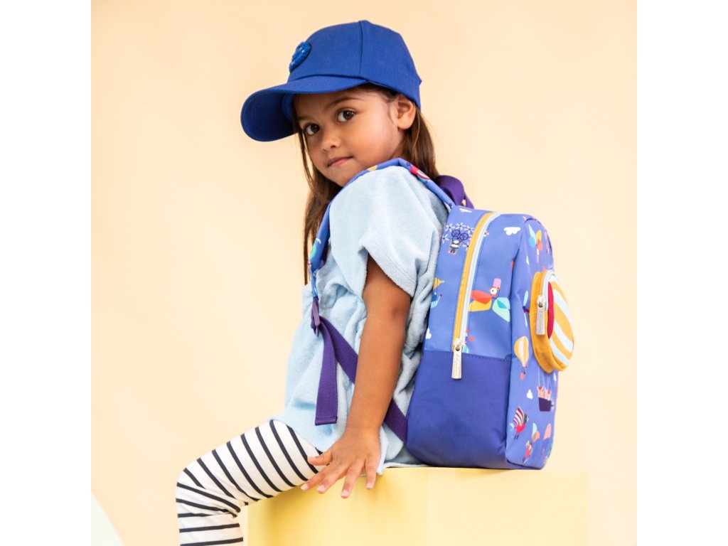 S týmto batôžtekom sa z každej prechádzky stane nezabudnuteľné dobrodružstvo. Batôžtek s predným vreckom v tvare vzducholode je určený pre deti od 2 rokov. Jeho rozmery sú 23,5 x 14 x 30 cm. Batôžtek je ideálny na prechádzku, do škôlky, na výlety. Do vnútornej veľkej komory sa krásne vojde desiata, fľaša na pitie, hračky a iné detské nevyhnutnosti. Praktická je aj gumička pre uchytenie fľaše s vodou a odkladacia priehradka. Na prednej strane je vrecko na zips, ku ktorému majú deti ľahký prístup. Batôžtek má nastaviteľné ramenné popruhy a praktické pútko pre prenášanie. Hrudný popruh drží batoh bezpečne na chrbte vášho dieťaťa. Batôžtek je uzatvárateľný na zips. Vyrobené z PET – 100 % recyklovaný polyester. Možno prať v práčke na 30 °C – šetrný cyklus.