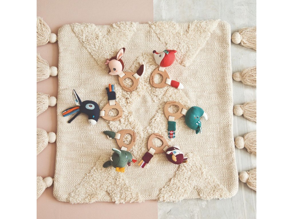 Lilliputiens - drevené hryzadielko s hrkálkou - dráčik Joe