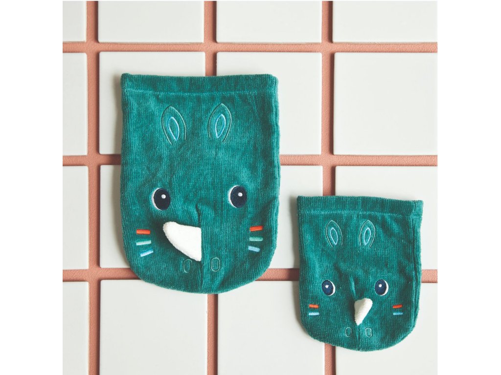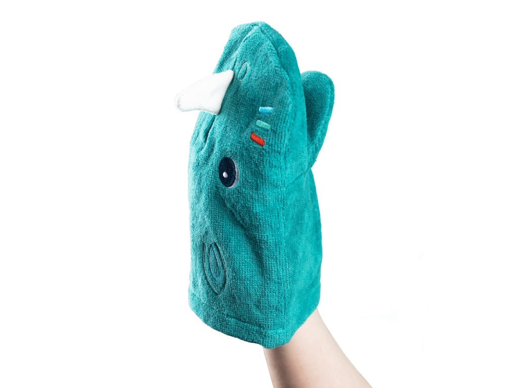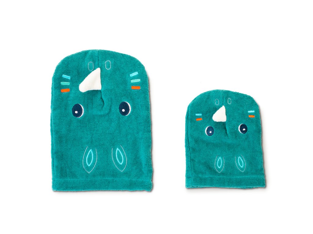 Urobte si z kúpeľa zábavnú aktivitu s touto super mäkkou súpravou rukavíc v tvare nosorožca Máriusa a jeho malého synčeka. Rukavice sa po nasadení na ruky premenia na zábavné bábky. Umývanie sa tak stane zábavnejšie a deti sa naučia samostatnosti. Rukavice sú jemné na detskú citlivú pleť a sú vhodné pre deti od 6 mesiacov. Tváre zvieratiek sú tvorené výšivkou. Vyrobené zo 100 % organického froté textilu. Možno prať v práčke na 30 °C.Dodatočné parametre