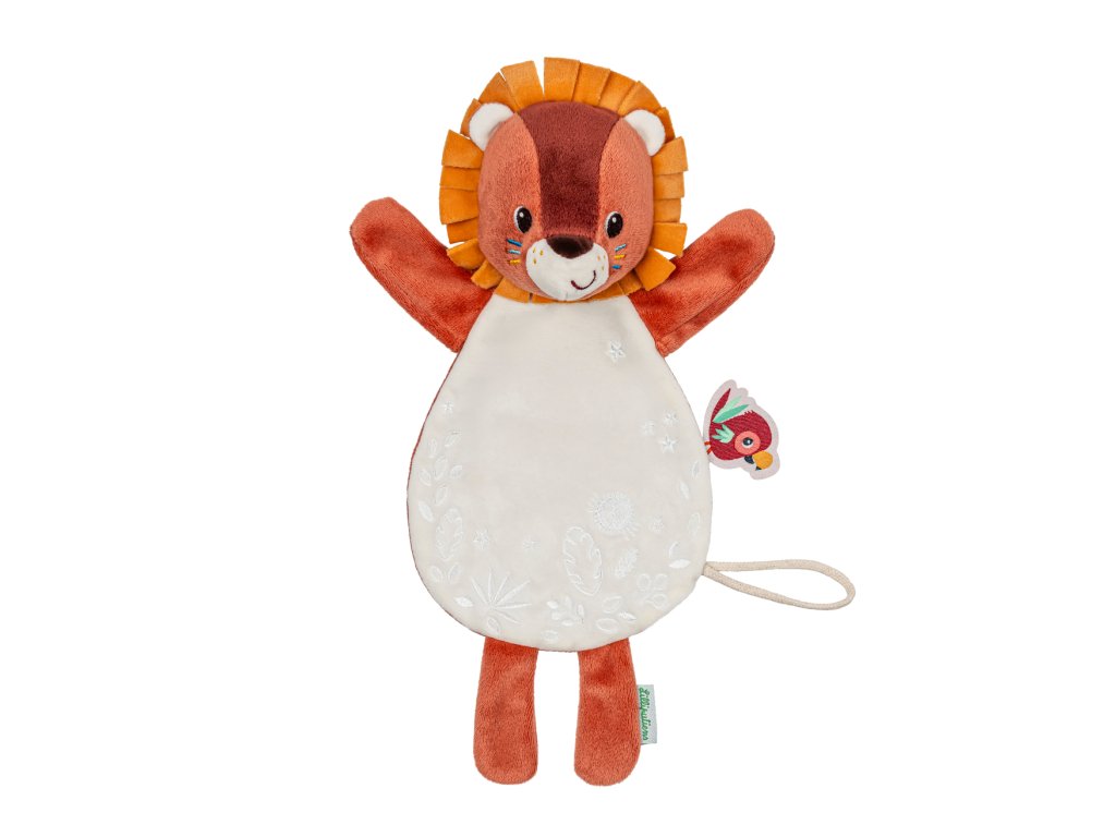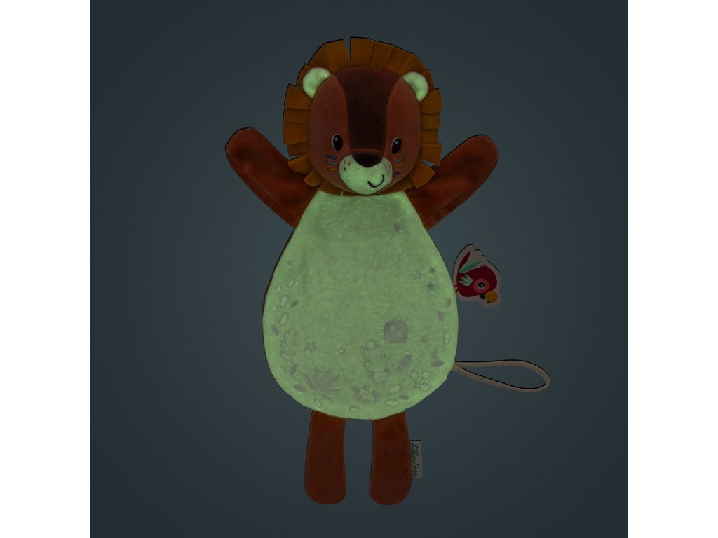 Plyšová maňuška levík Jack je vhodná od narodenia. Hračka, ktorá v tme svieti, dieťa upokojuje a nikdy ju nestratí. Malým bonusom tohto plyšiaka Lilliputiens je pútko na cumlík – ideálna pre to, aby sa nestratil ani vo dne, ani v noci. Možno prať v práčke na 30 °C na jemný cyklus. Materiál: polyester, bavlna. Rozmery: 19 cm x 8 cm x 33 cm.