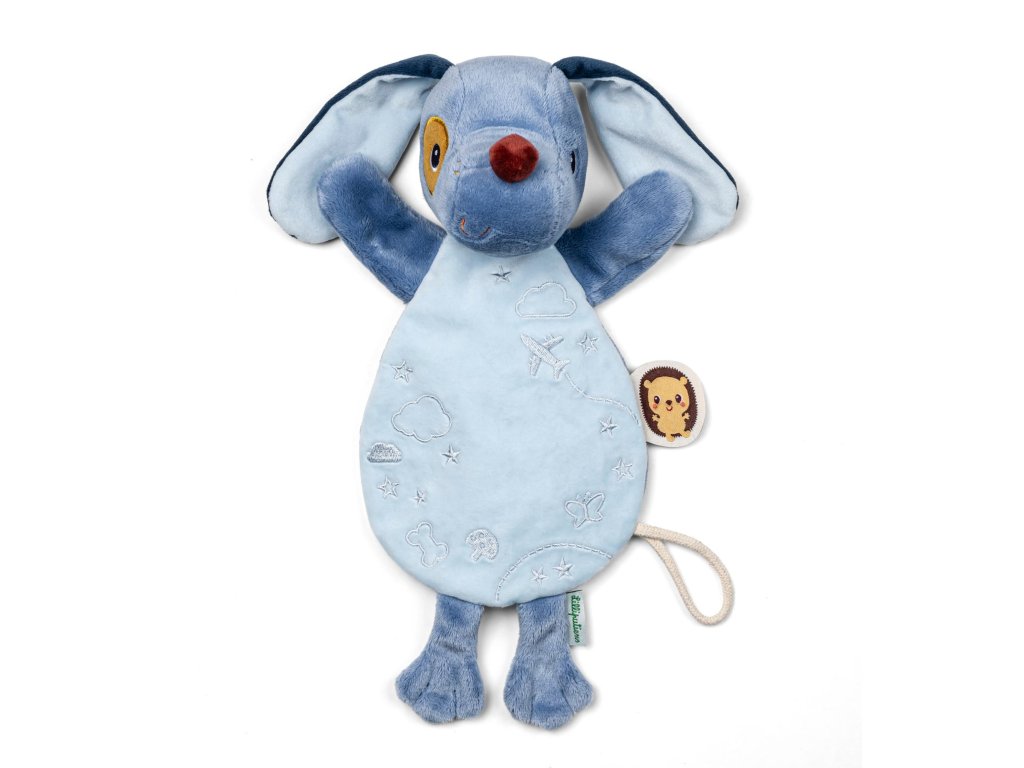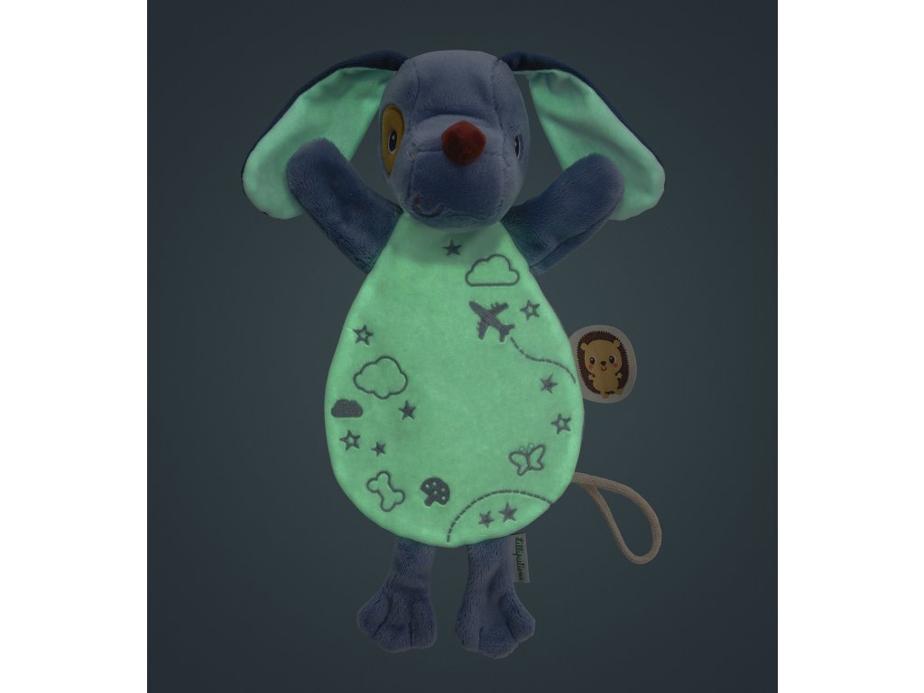 Plyšová maňuška psík Jules je vhodná od narodenia. Hračka, ktorá v tme svieti, dieťa upokojuje a nikdy ju nestratí. Malým bonusom tohto plyšiaka Lilliputiens je spona na cumlík – ideálna pre to, aby sa nestratil ani vo dne, ani v noci. Možno prať v práčke na 30 °C na jemný cyklus. Materiál: polyester, bavlna. Rozmery: 21 cm x 10 cm x 34 cm.