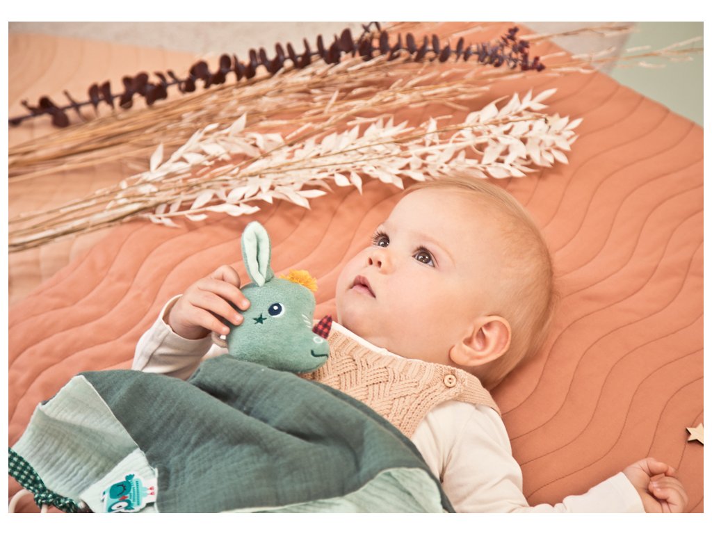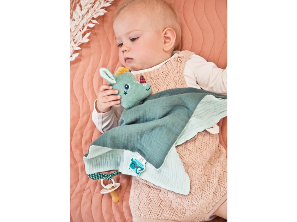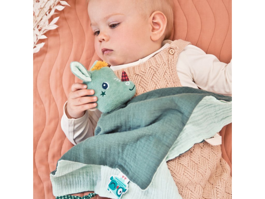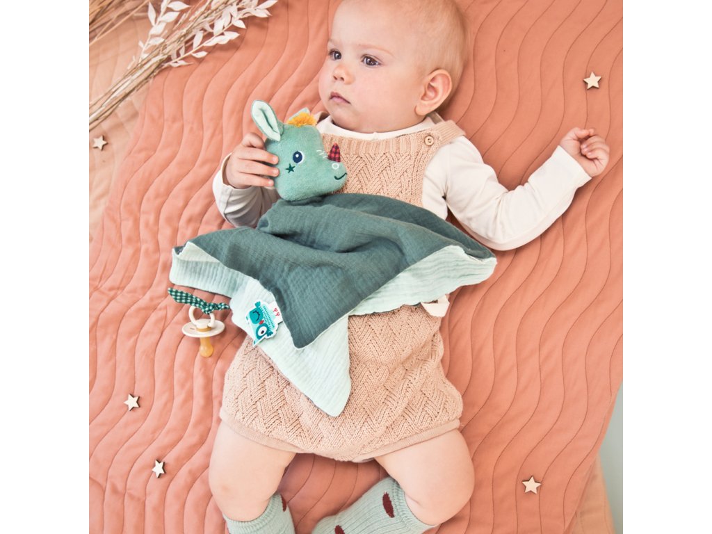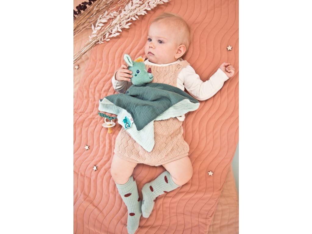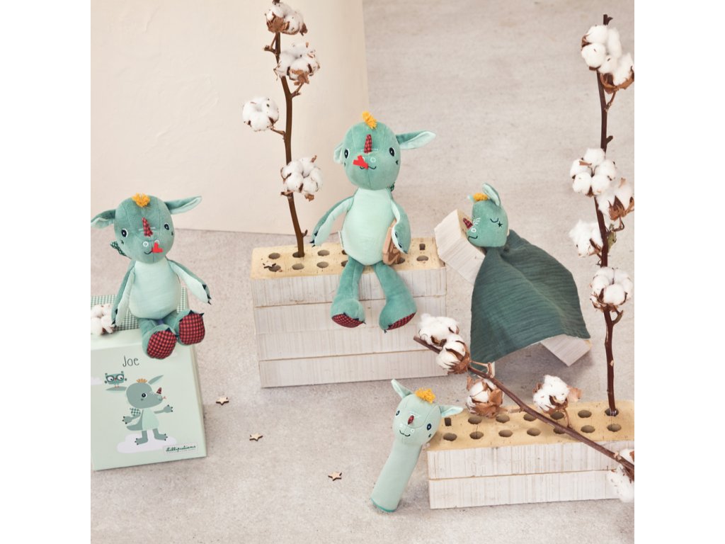 Dráčik Joe je tu pre vaše deti v ktorúkoľvek dennú i nočnú dobu. Mäkučký maznáčik dráčik Joe je ideálna hračka do postieľky pre deti už od narodenia. Mäkký dotyk a postavička kamaráta Joeyho bude deti upokojovať pri zaspávaní. Navyše sa možno s Joeym hrať ako s bábkou a starším deťom tak môžete rozprávať príbehy. Maznáčika využijete i ako držiak na cumlík. Rozmery maznáčika sú 32 x 32 cm. Možno prať v práčke na jemný cyklus pri 30 °C. Vyrobené z organickej bavlny. Výplň je zo 100 % recyklovaného polyesteru.