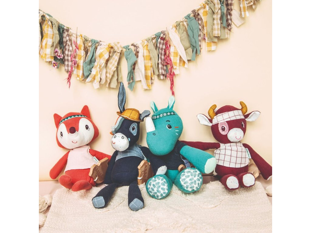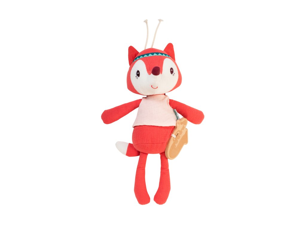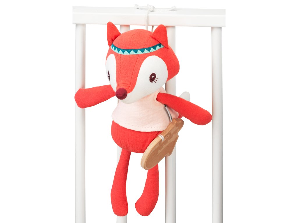 Textilná hračka pre deti už od narodenia. Líška Alice má vo vnútri ukrytý hudobný strojček. Stačí zatiahnuť za drevený nástroj a melódia sa spustí. Líšku možno zavesiť aj na postieľku pre potešenie najmenších. Ideálna hračka na uspávanie detí. Rozmery hračky sú 30 x 11 cm. Možno prať v práčke na 30 °C na jemný cyklus po odobratí hudobného strojčeka a dreveného nástroja. Použité materiály: 100 % organická bavlna a FSC drevo. Výplň hračky je 100 % recyklovaný polyester (certifikácia GRS). Hudobný strojček hrá známu melódiu “Yesterday once more".
