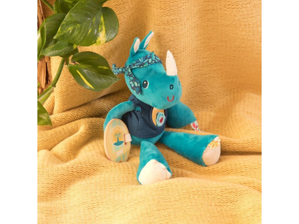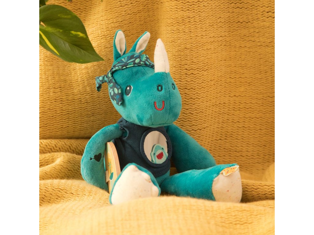 Marius je vášnivý surfer a svoj surf nosí stále pri sebe. Textilná hračka stimuluje zmysly dieťaťa prostredníctvom rôznych aktivít – rozpoznávanie zvukov a textúr či objavovanie odrazu v zrkadle. Nič nie je nemožné s touto zábavnou hračkou, ktorá je skutočnou výzvou a zábavou pre najmenšie deti. Navyše sa večer nosorožec premení na mäkučkého plyšiaka, ktorého možno objímať pri zaspávaní. Ideálny kamarát pre deti od 9 mesiacov. Rozmery hračky sú 30 x 17 x 10,5 cm. Možno prať v práčke na jemný cyklus pri 30 °C. Vyrobené zo 100 % polyesteru.Dodatočné parametre