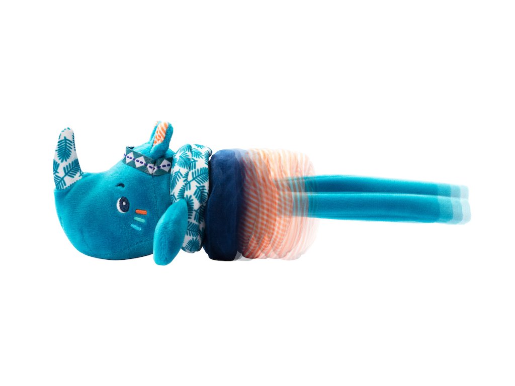 Zábavná plyšová vibračná hračka pre deti od 6 mesiacov. Zatiahnite za nôžky a nosorožec sa razom roztancuje. Hračku možno zavesiť do detských autosedačiek, kočiarikov alebo na postieľku. Tancujúci nosorožec upúta pozornosť detí pohybom i zvukom a rozvíja tak ich zmysly. Hračka je vyrobená zo 100 % polyesteru. Rozmery hračky sú 21 x 5 x 5 cm.Dodatočné parametre
