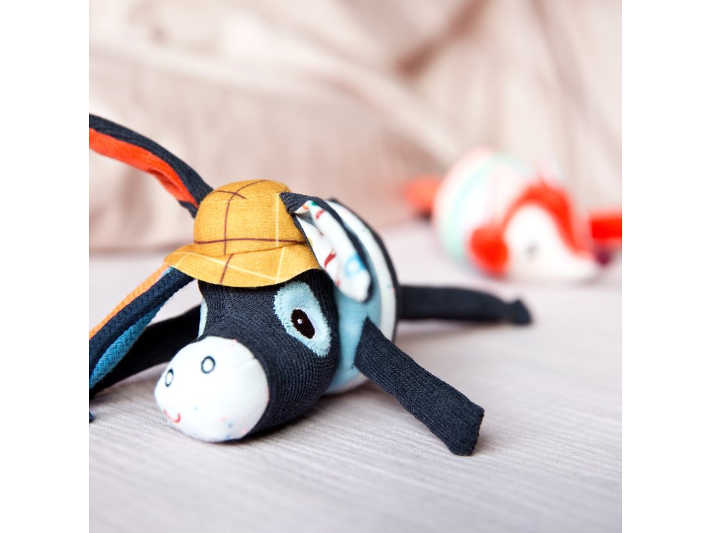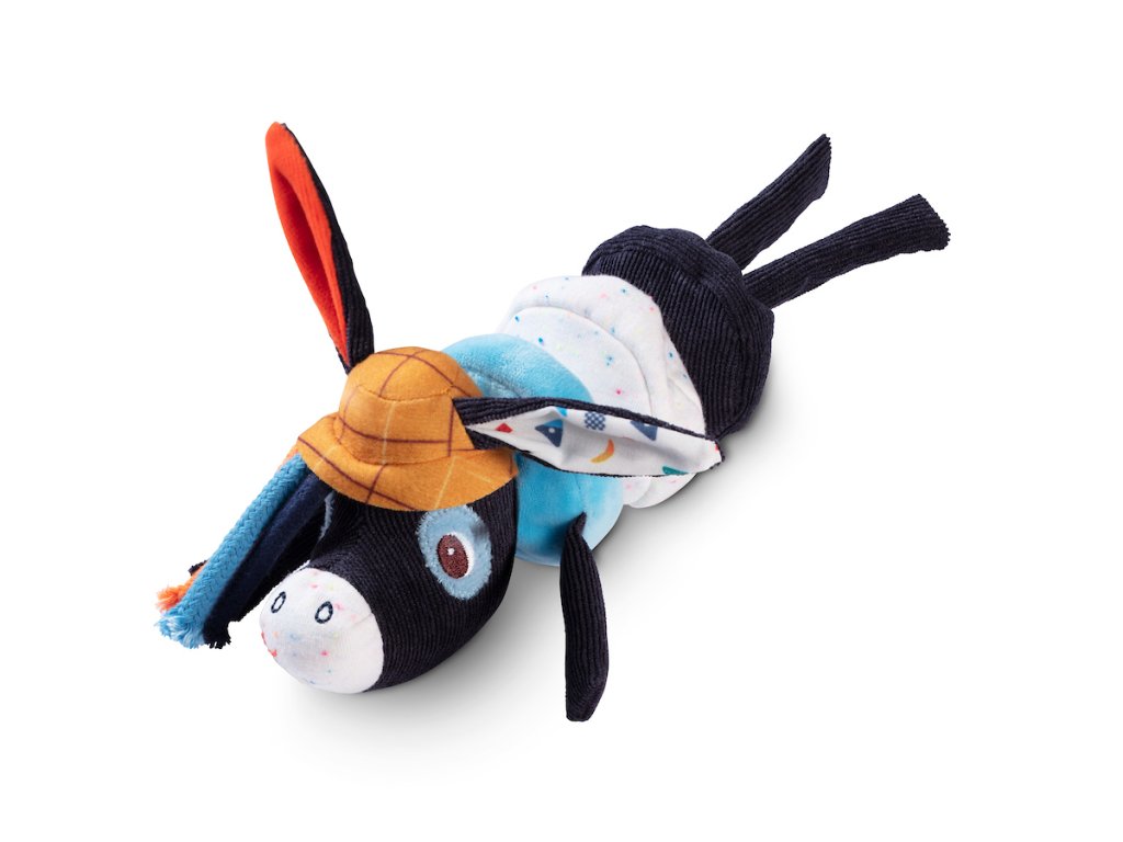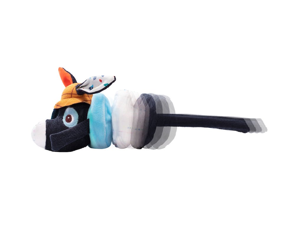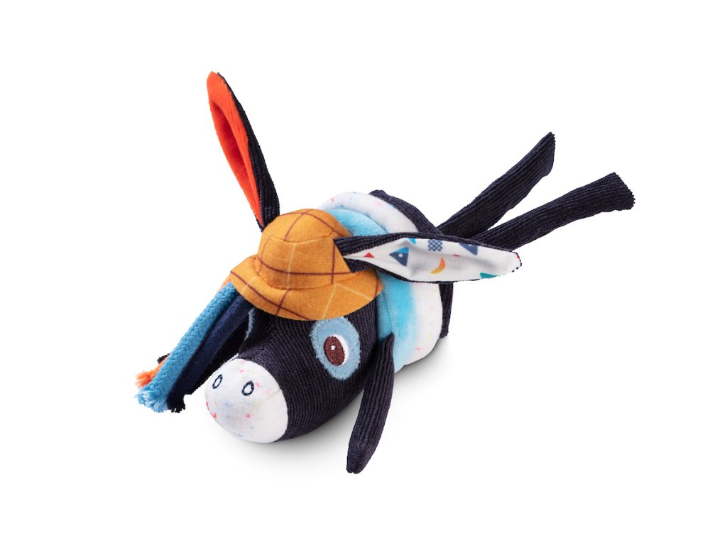 Zábavná plyšová vibračná hračka pre deti od 6 mesiacov. Zatiahnite za nôžky a oslík sa razom roztancuje. Hračku možno zavesiť do detských autosedačiek, kočiarikov alebo na postieľku. Tancujúci oslík upúta pozornosť detí pohybom i zvukom a rozvíja tak ich zmysly. Hračka je vyrobená zo 100 % polyesteru. Rozmery hračky sú 21 x 5 x 5 cm.Dodatočné parametre