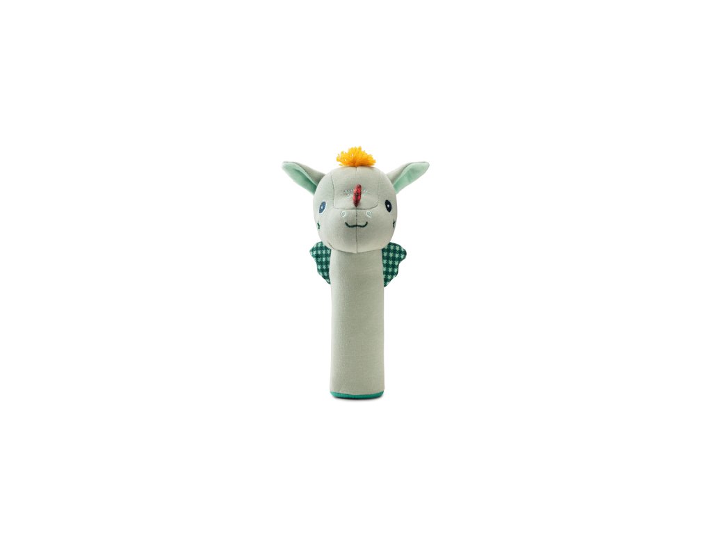 Dráčik Joe v podobe pískacej hračky je určený pre deti od 3 mesiacov. Ideálna hračka pre rozvoj motorických schopností malých detí. Deti sa učia ako funguje akcia a reakcia. Je potrebné stlačiť bruško, aby ste počuli pískanie. Rozmery hračky sú 7 x 3,5 x 16,5 cm. Možno prať ručne. Hračka je ľahučká. Vyrobené zo 100 % bavlny, výplň je 100 % recyklovaný polyester.