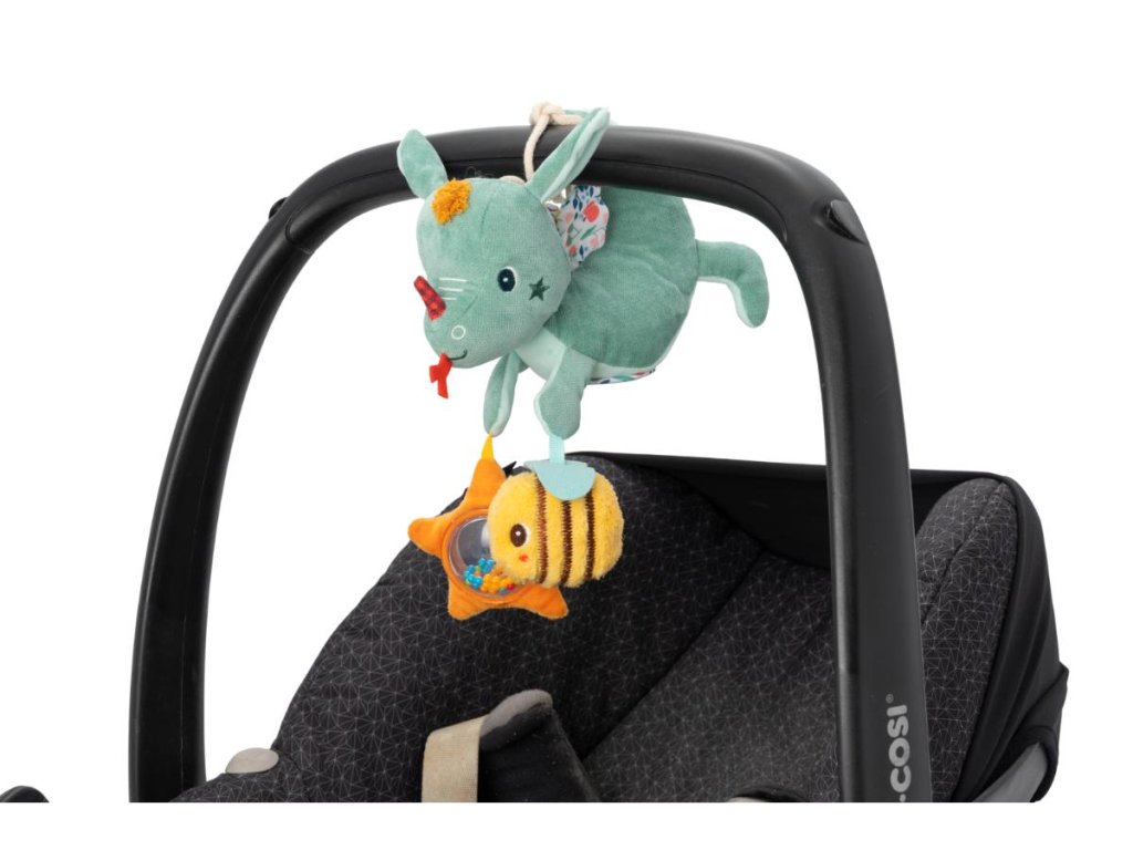 Plyšový dráčik Joe, pripevnený k detskej sedačke vyzýva deti objavovať a hrať sa. Hračka zaujme deti rôznymi zvukmi, textúrami a odrazmi svetla. Rozvíja jemnú motoriku a zmysly vášho dieťatka. Tohto roztomilého spoločníka na doma aj na cesty možno ľahko pripevniť nad postieľku, na sedačku alebo na hraciu hrazdičku. Starším deťom dráčika zložíme a môže sa tak stať obľúbeným plyšovým kamarátom na spanie. Materiál: polyester, bavlna. Rozmery hračky sú 20 x 7 x 24 cm. Ideálny vek pre hru s touto hračkou je od 3 mesiacov. Možno v práčke na 30 °C – šetrný cyklus.